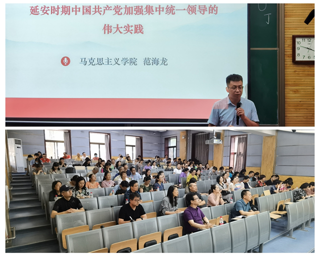 随后,马克思主义公司范海龙老师以“延安时期中国共产党加强集中统一领导的伟大实践”为题讲授党史学习教育大课,他从历史背景、政策措施、主要成效、现实启示四个角度系统全面的讲述了延安时期党加强集中统一领导的历史脉络。