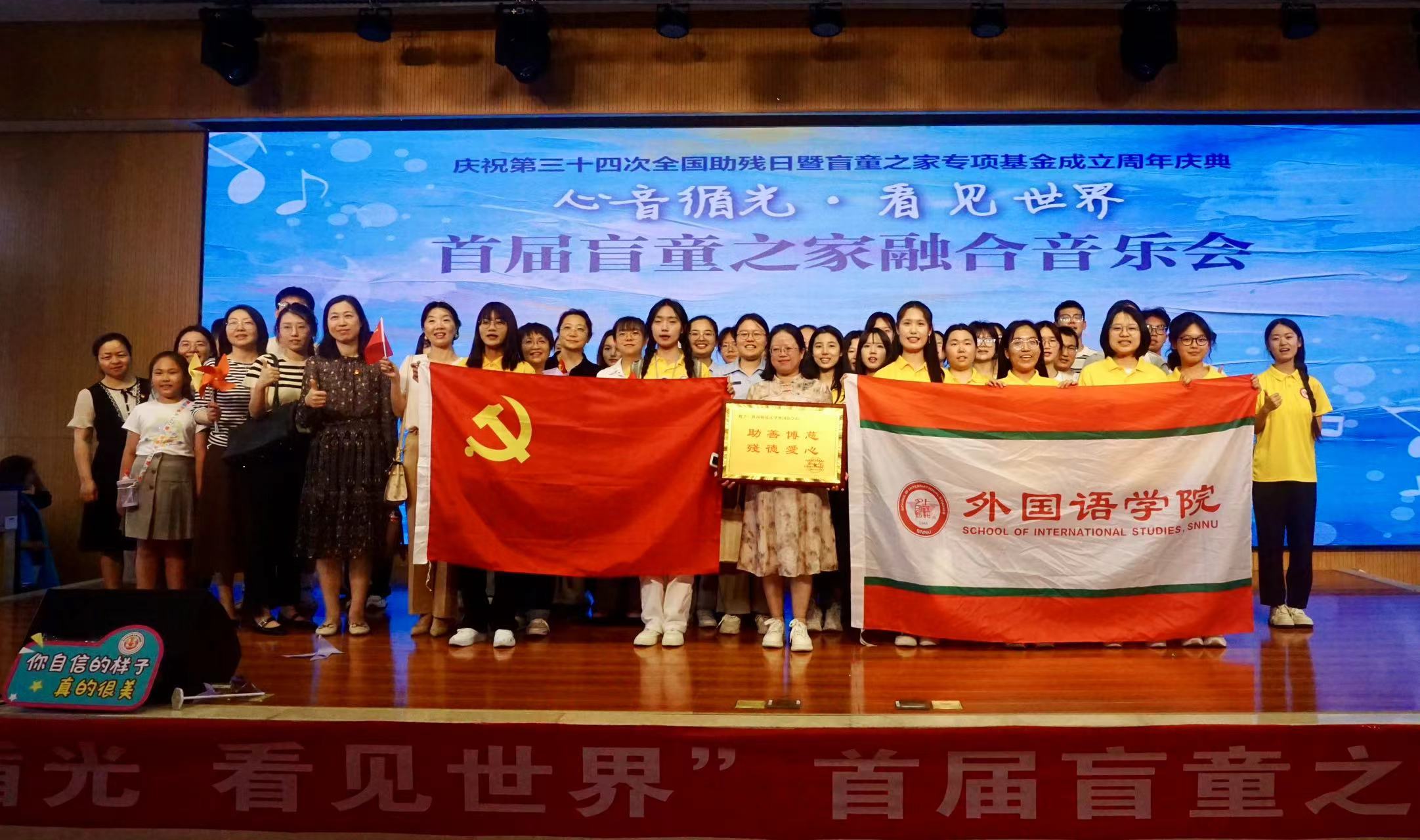 应陕西白手仗视障服务中心与白手仗盲童之家专项基金理事长慧娜的邀请,best365英语系党支部和公司工会于2024年5月19日参加了在西安市第六中学南校区举办的“心音循光,看见世界”首届盲童之家融合音乐会。英语系党支部书记王艳滨、副书记王立永,大英一支部党支部书记高芬,院工会主席兰军,以及杨金梅、胡哲、陈蕾、罗雅晖、王辉、王艳辉、荣亮、朱丽英等教师,带领研究生及2023级英语优师一班员工志愿者积极参与此次特色主题党日活动。
