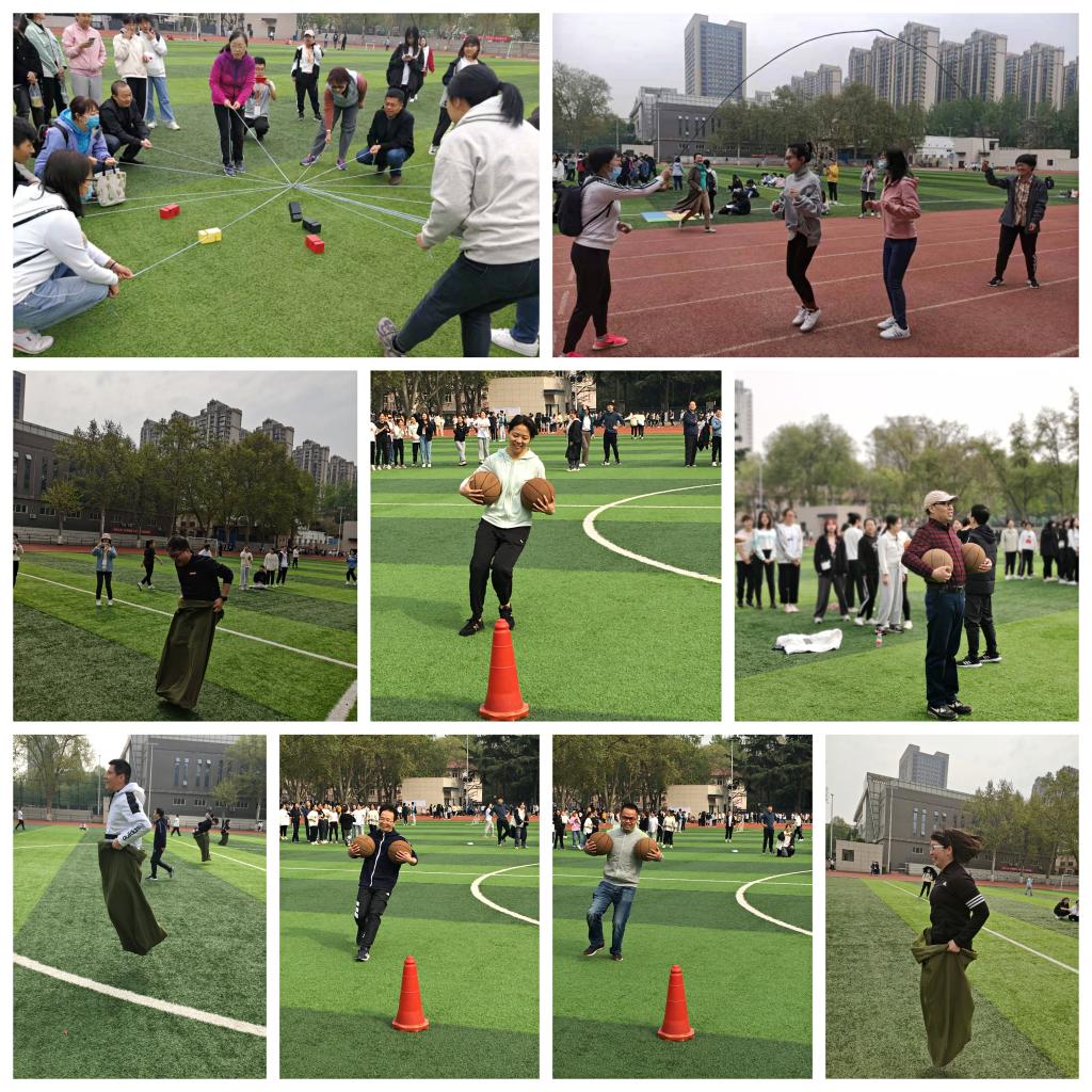 本次教职工运动会分为竞赛项目和趣味项目,4*1接力赛、团体跳大绳、不倒森林、摸石头过河、合力建塔、袋鼠跳、抱球接力跑等项目中,教师们团结奋进的身影活跃在赛场的每个角落,尽情享受着健康运动带来的欢乐。