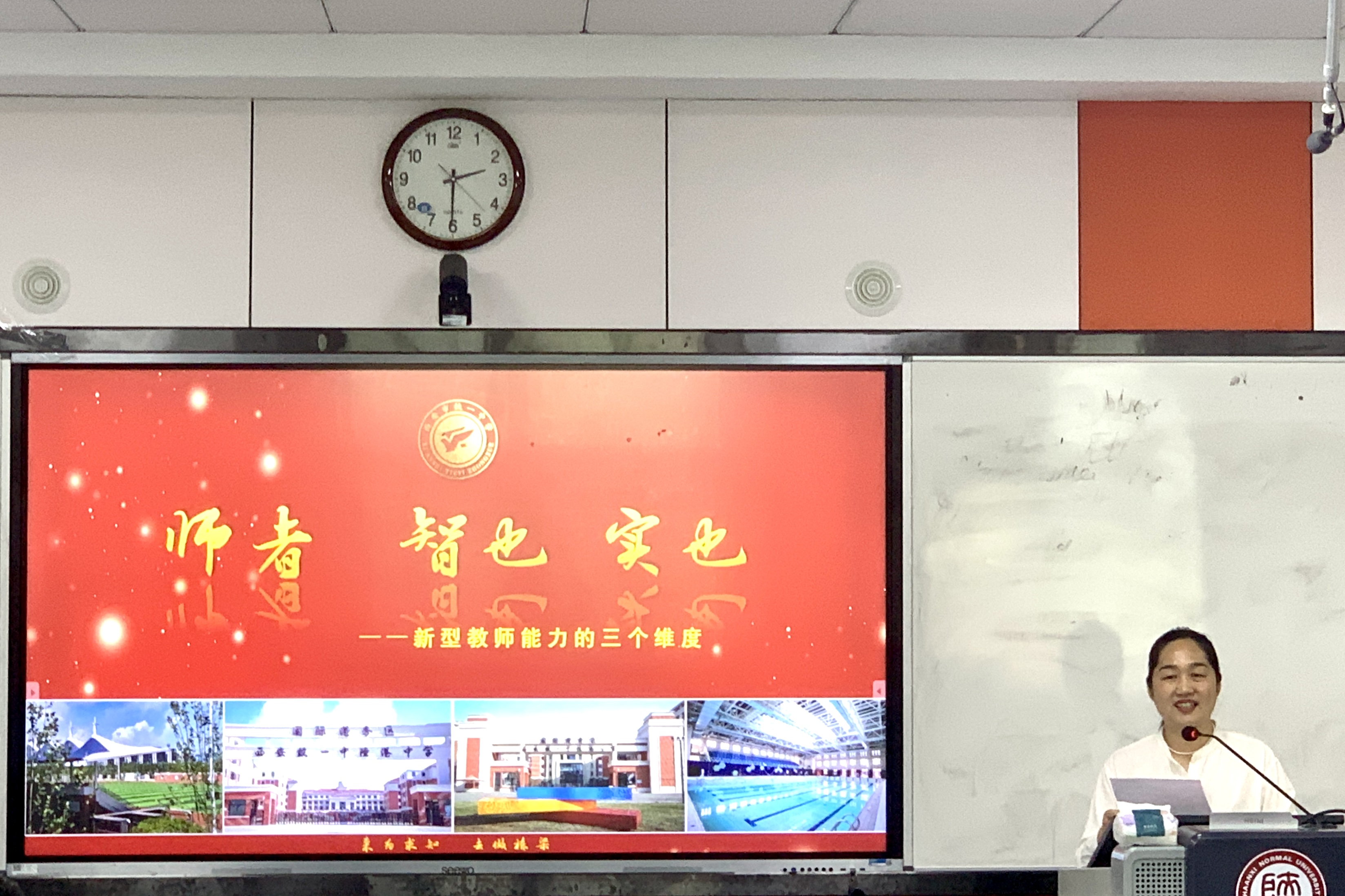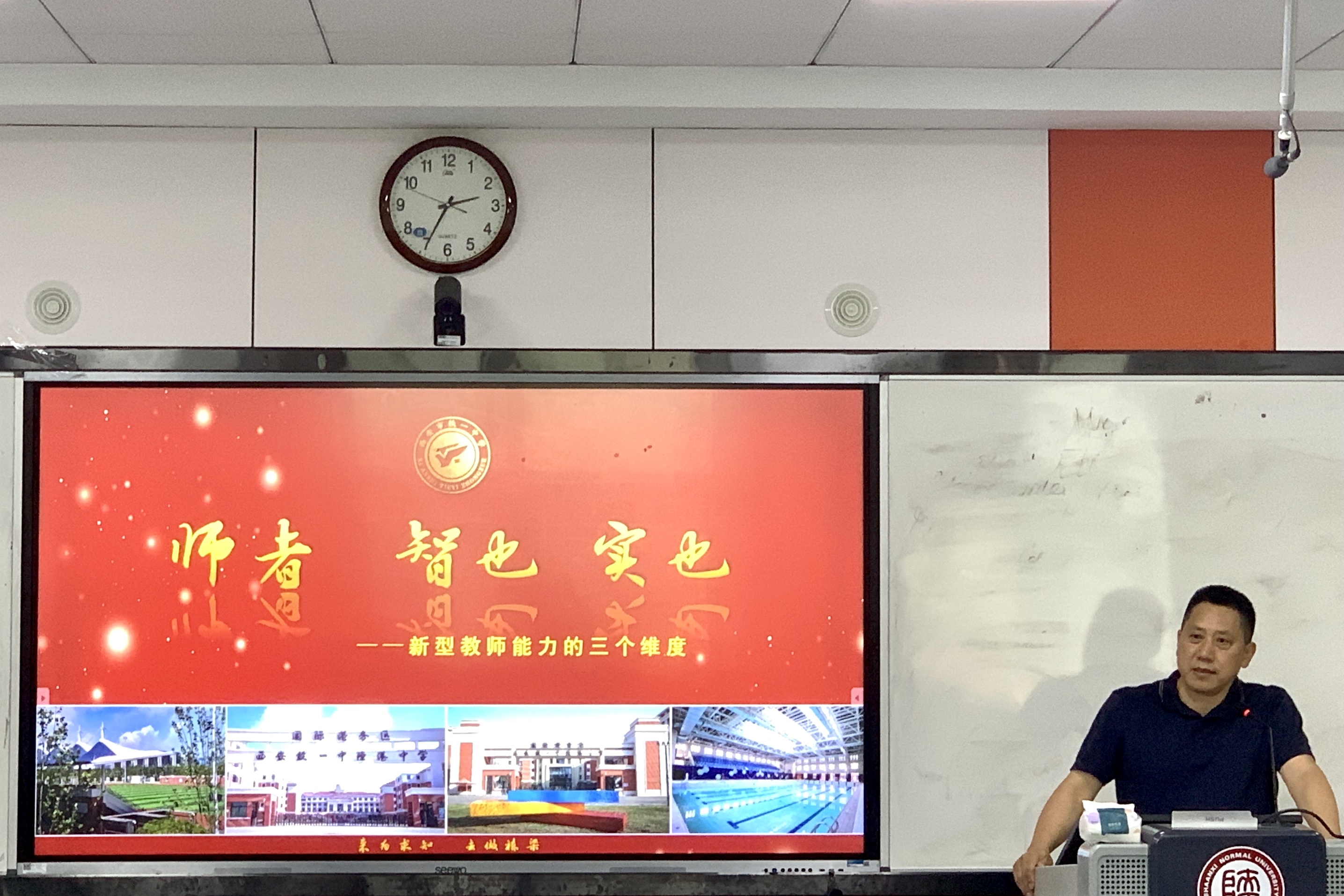 为提升教师专业素养,明确基础教育发展方向,5月16日下午14:30,best365正规于雁塔校区教学六楼6301报告厅举办会通讲堂第32期。本次讲座邀请到教育部教师远程培训中心副主任,best365官方网站外聘教授,正高级教师,国际港务区铁一陆港公司执行董事长,陕西省公司督导评价专家,西安市教育家型教师培养对象肖邦国董事长,为员工开展题为“师者 智也 实也——新型教师能力的三个维度”的讲座。公司原党委书记冯武鸣、团委书记李丹、各年级辅导员及100余名各年级师范生代表共同参与本次讲座。公司党委副书记鲁燕主持会议,