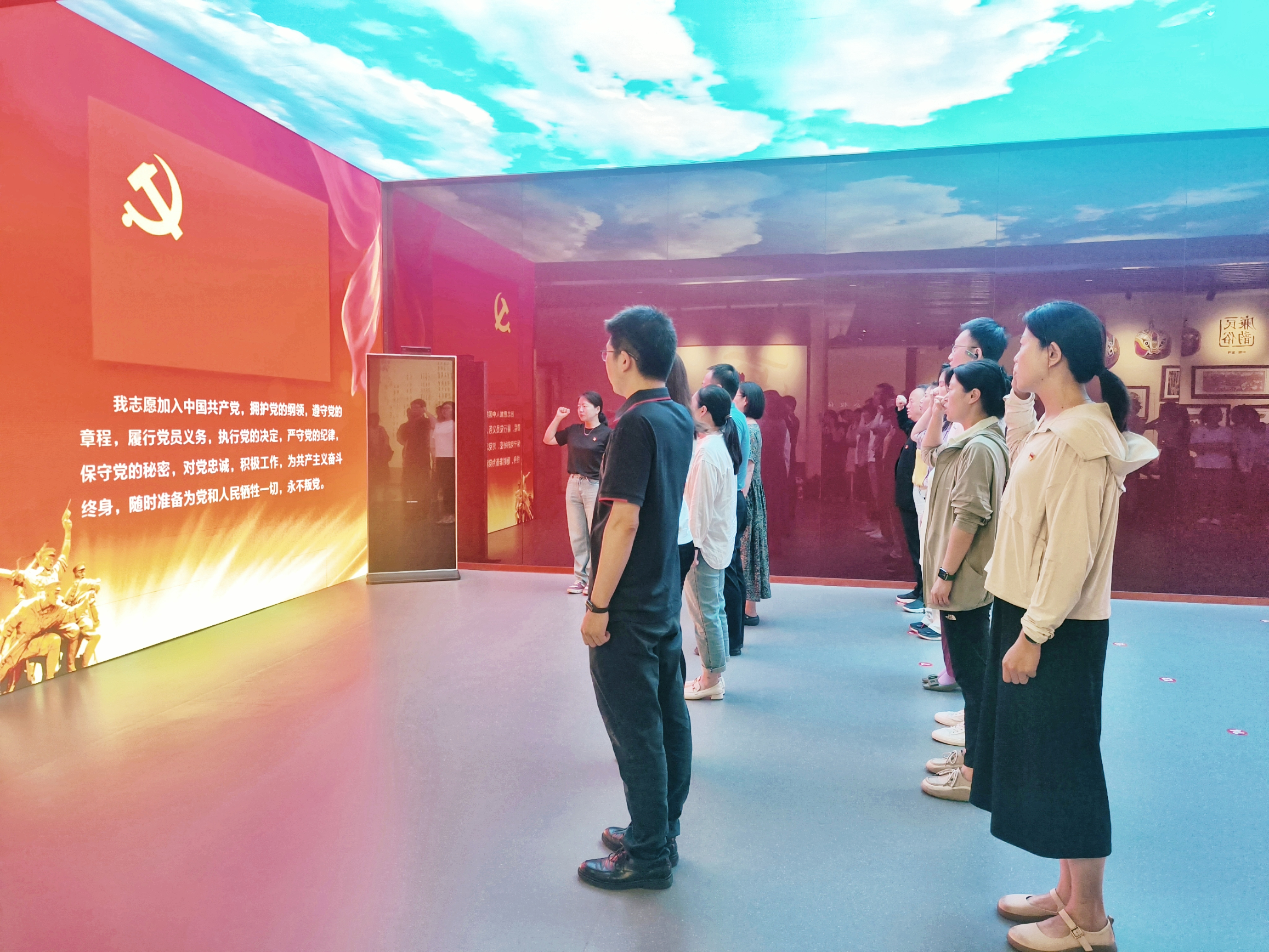 参观学习结束后,全体党员重温入党誓词,坚定理想信念,铭记初心使命。