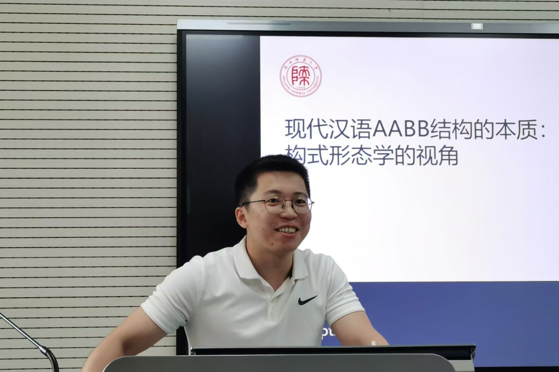 为营造浓厚的科研氛围,激发公司研究生的研究热情,拓展其研究视野,9月26日下午16:30,best365正规“博理”研究生学术沙龙在雁塔校区教学六楼6320教室举行。在本次学术沙龙中,公司2021级外国语言文学专业博士生傅宏杰以“现代汉语AABB结构的本质:构式形态学的视角”为题,作了分享报告,2024级学科教学(英语)专业硕士研究生孟琦担任主持。