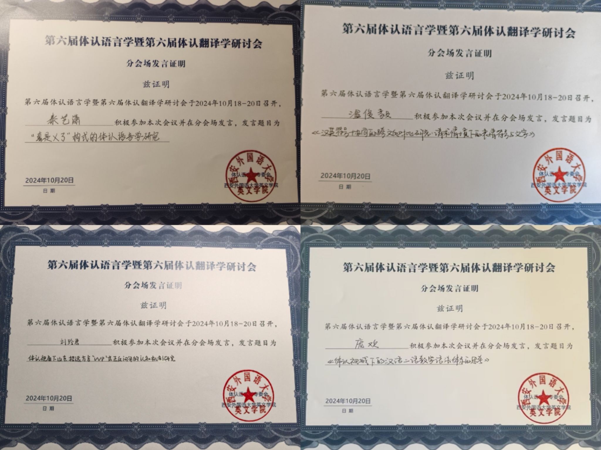 2024年10月18至20日,第六届体认语言学暨第六届体认翻译学研讨会在陕西西安成功举行。本次大会由体认语言学专委会主办,西安外国语大学英文公司、四川外国语大学中外文化比较研究中心和外语教学与研究出版社承办,多家学术期刊协办。来自国内外多所高校的170余名专家学者和青年员工参加了本次会议。大会历时一天半,共举办了21场专家主旨发言、6场分会场发言和1场主编论坛。