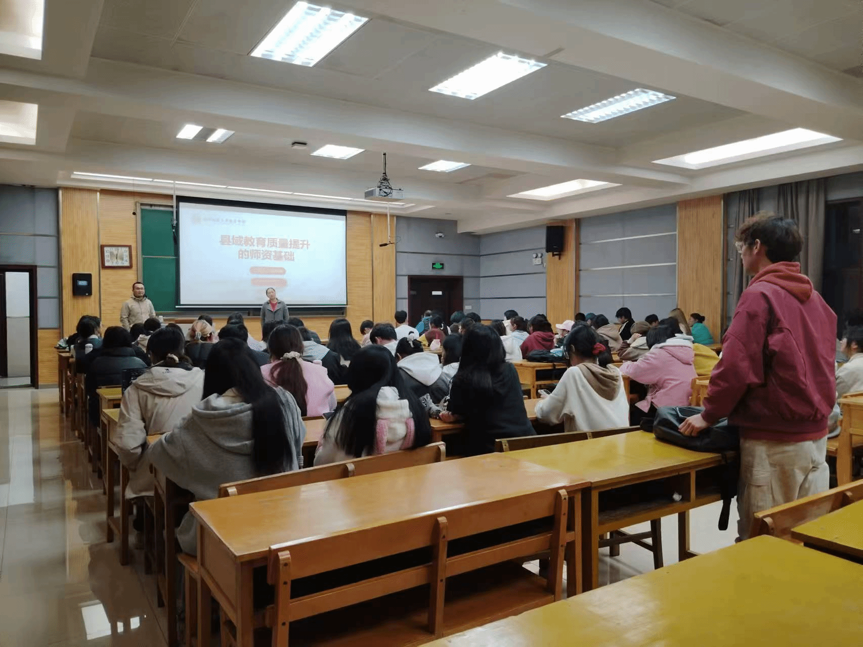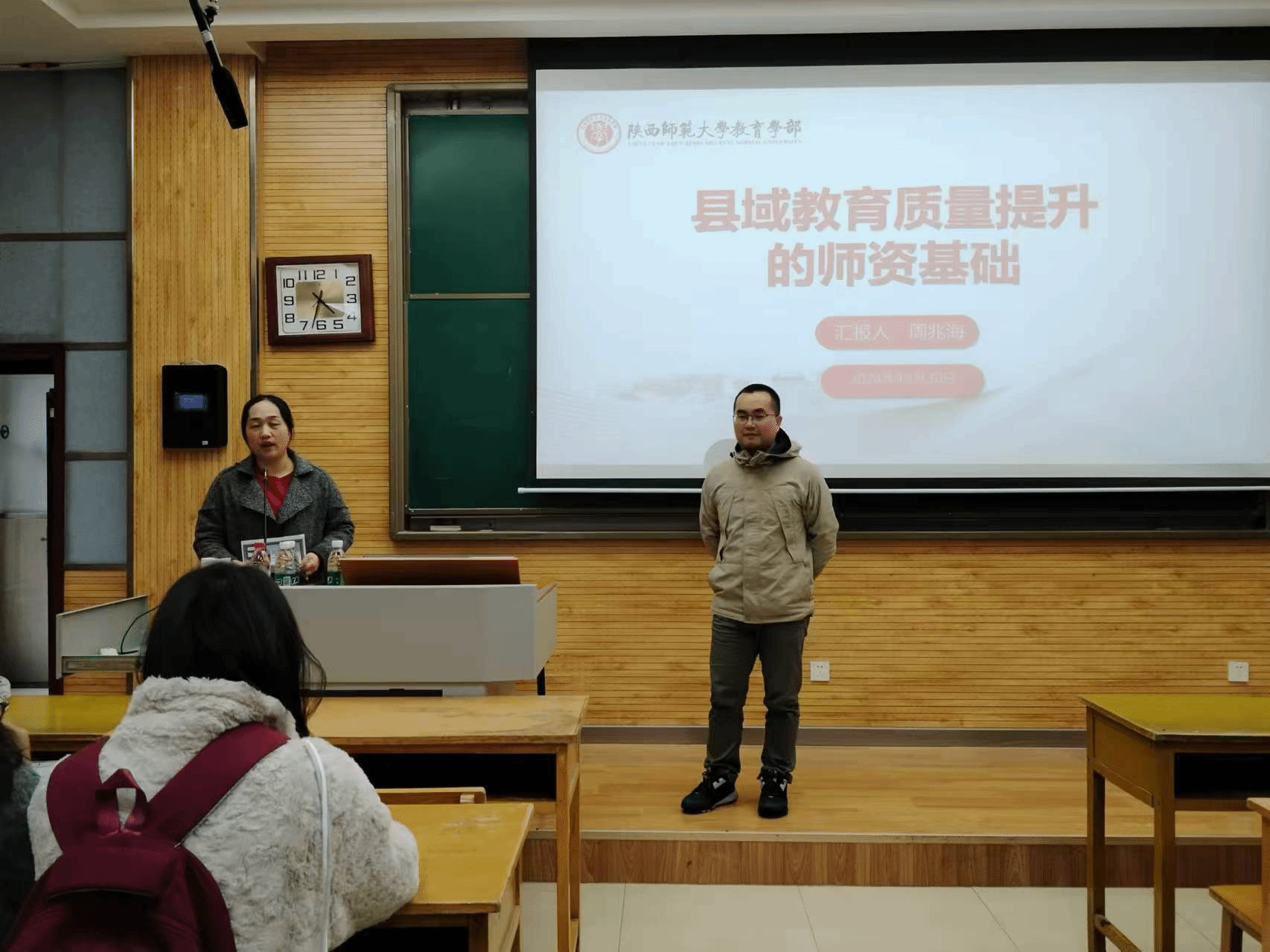 最后,周兆海教授对县域教育质量中优质团队的能动性与主动性进行了深刻分析。为“优师计划”师范生明确了在县域教育的发展空间和良好待遇,更是勉励各位同学为成为一名优秀教师时刻准备着,不仅要做思考的教师,更要做县域教育发展的引领者,让同学们更加坚定了为国家基础教育事业贡献力量的决心。