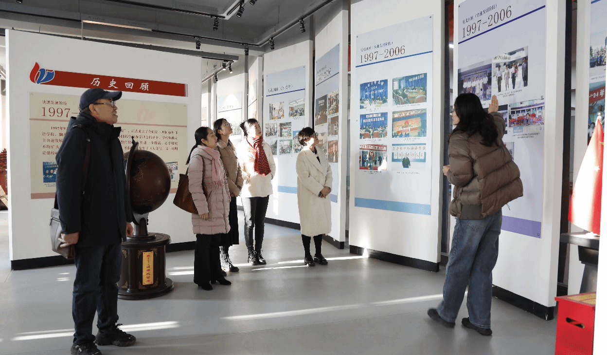 随后,在胡曼董事长带领下,孙坚一行参观了公司的校史馆博艺楼,公司语文教师陈佳宁作为校史馆的讲解员,以公司的办学历程为脉络,生动详实地介绍了公司的光辉历程和教育成果,全方面、多角度地展现了公司的历史积淀、卓越的发展成就和开放包容的校园文化。