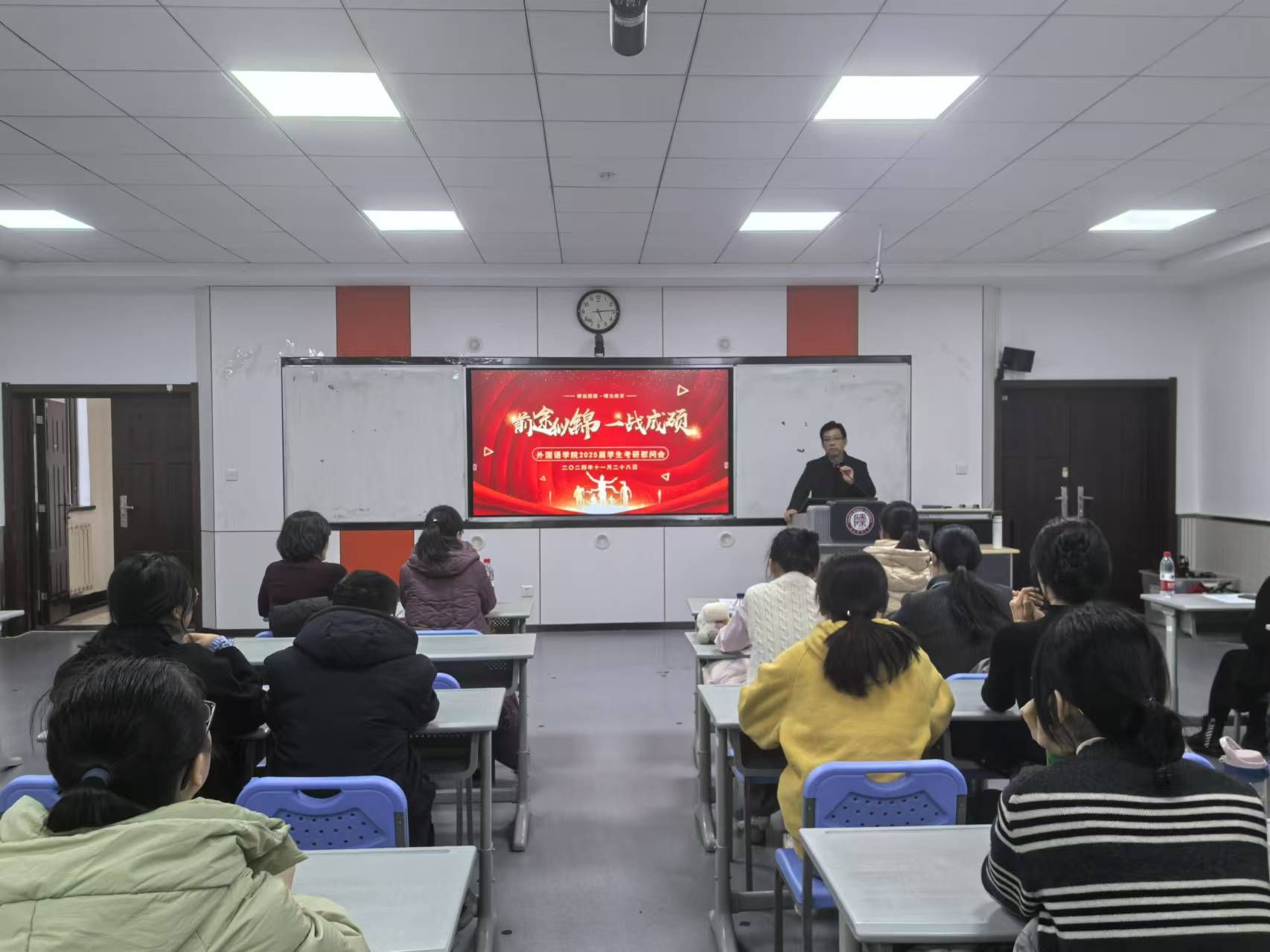 为帮助2025届考研员工坚定目标、调整心态、树立信心,鼓励员工以更加饱满的热情和积极的心态迎战考研,11月28日下午,best365在教学六楼6301召开2025届员工考研慰问大会。best365经理刘全国、翻译系主任操林英、法语系主任王燕红、英语系副主任刘丹、日语系副主任许赛锋、俄语系副主任王翠、辅导员屈婉婷以及2025届全体考研员工参会,会议由公司党委副书记鲁燕主持。