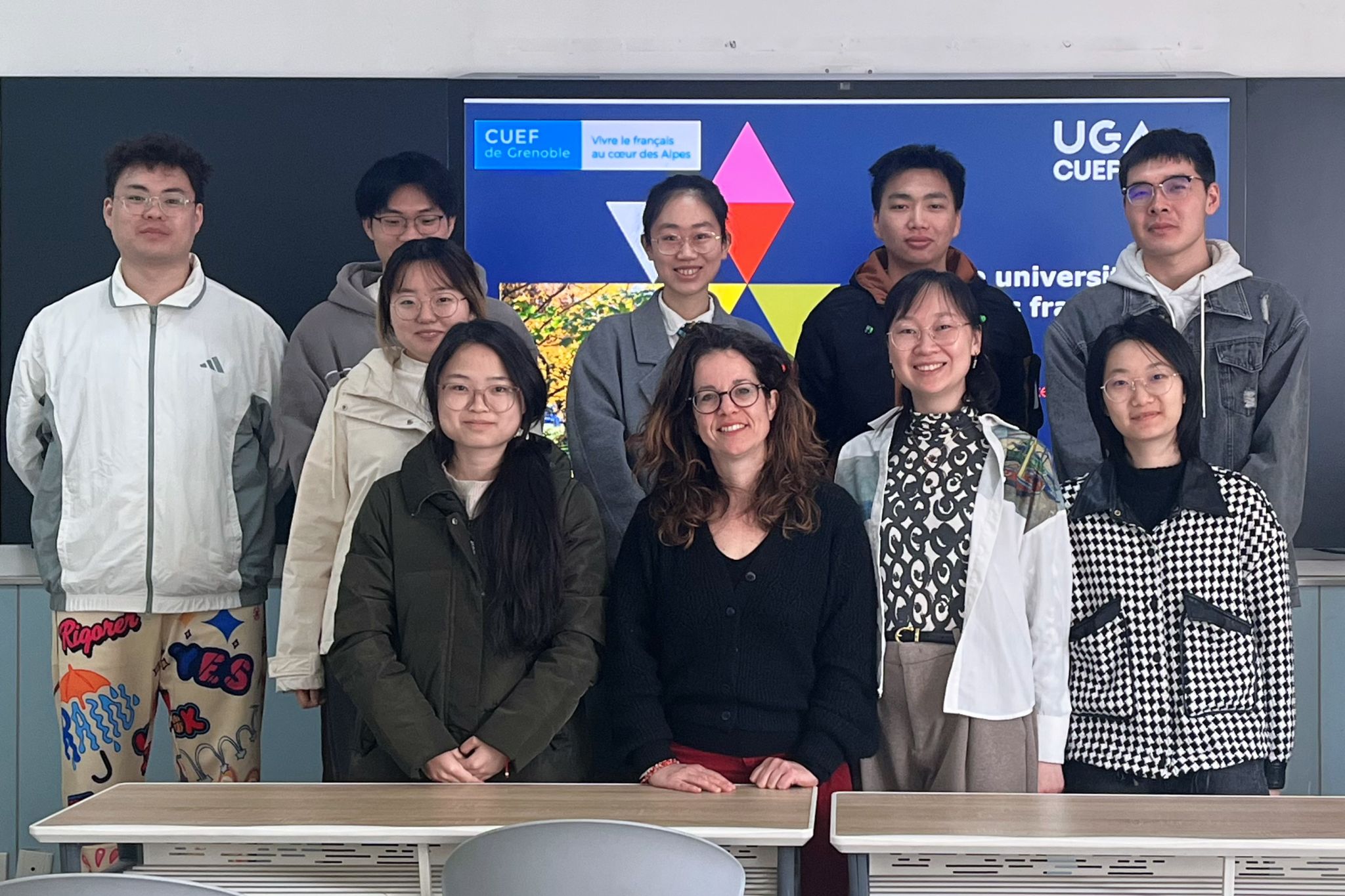当日上午,Montagnon女士与公司法语系师生进行面对面交流。她以生动的资料展示了格勒诺布尔-阿尔卑斯大学的学习生活场景,并重点介绍了该校优势学科及国际交流项目可选课程,包括语言学、信息传播学等方向。