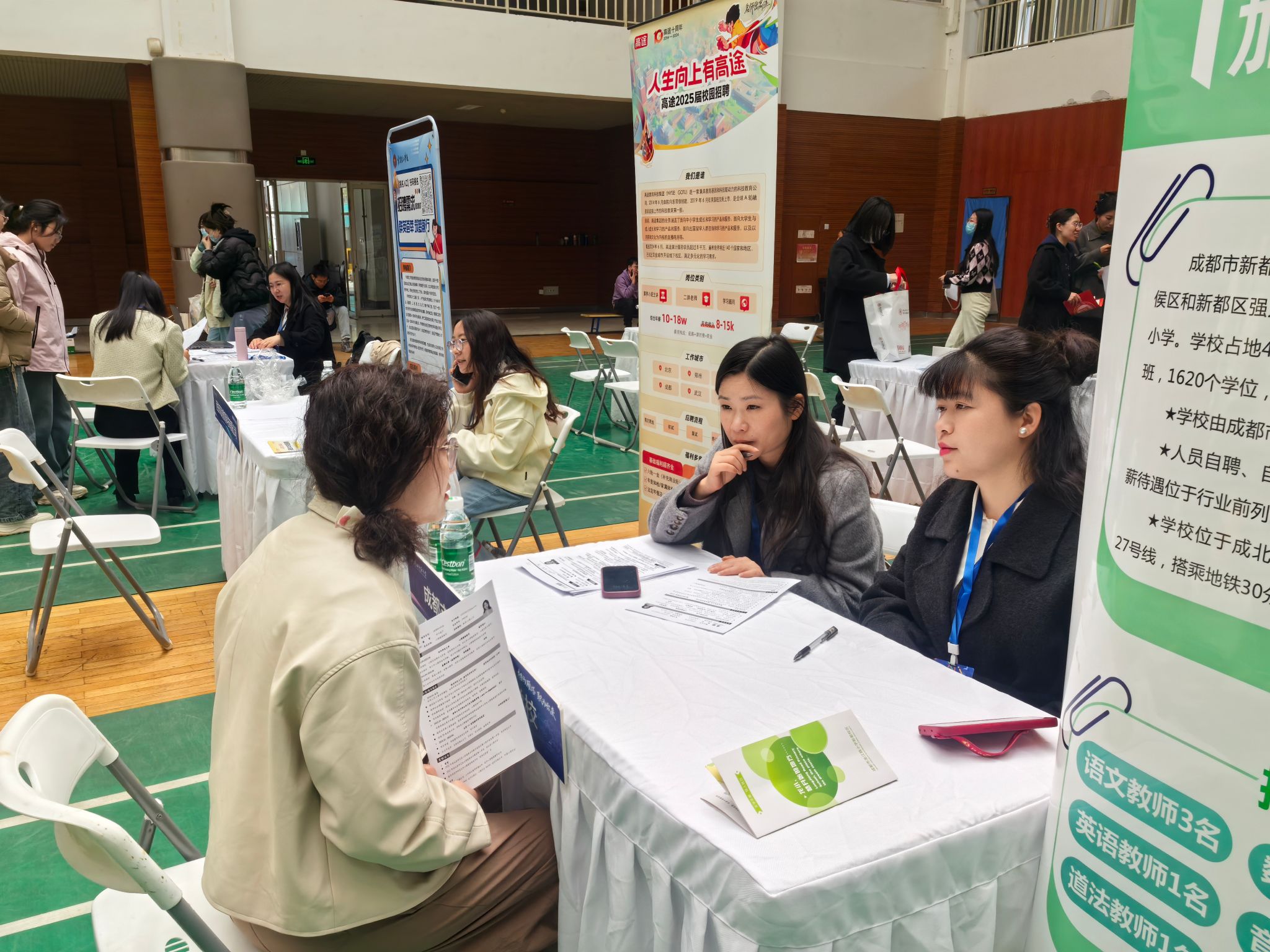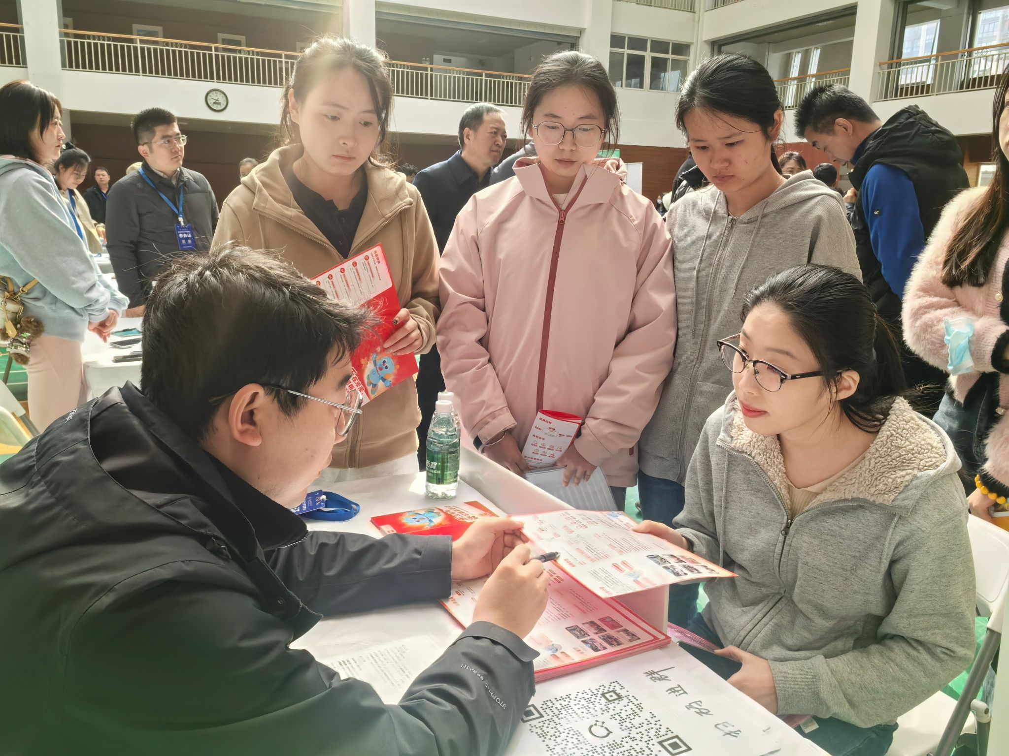 本次招聘会共有来自全国各省(自治区、直辖市)的64家单位参加,涵盖幼儿园、中小学、高校教师等岗位和课程研发、行政管理等众多领域,吸引了来自教育、心理、外语专业的校内外800余名员工参与。招聘会现场气氛热烈,毕业生积极投递简历,与招聘单位深入沟通工作内容及发展前景。同时也吸引了大量低年级员工参加,他们主动了解实习岗位要求,提前感受就业氛围,明晰职业方向。