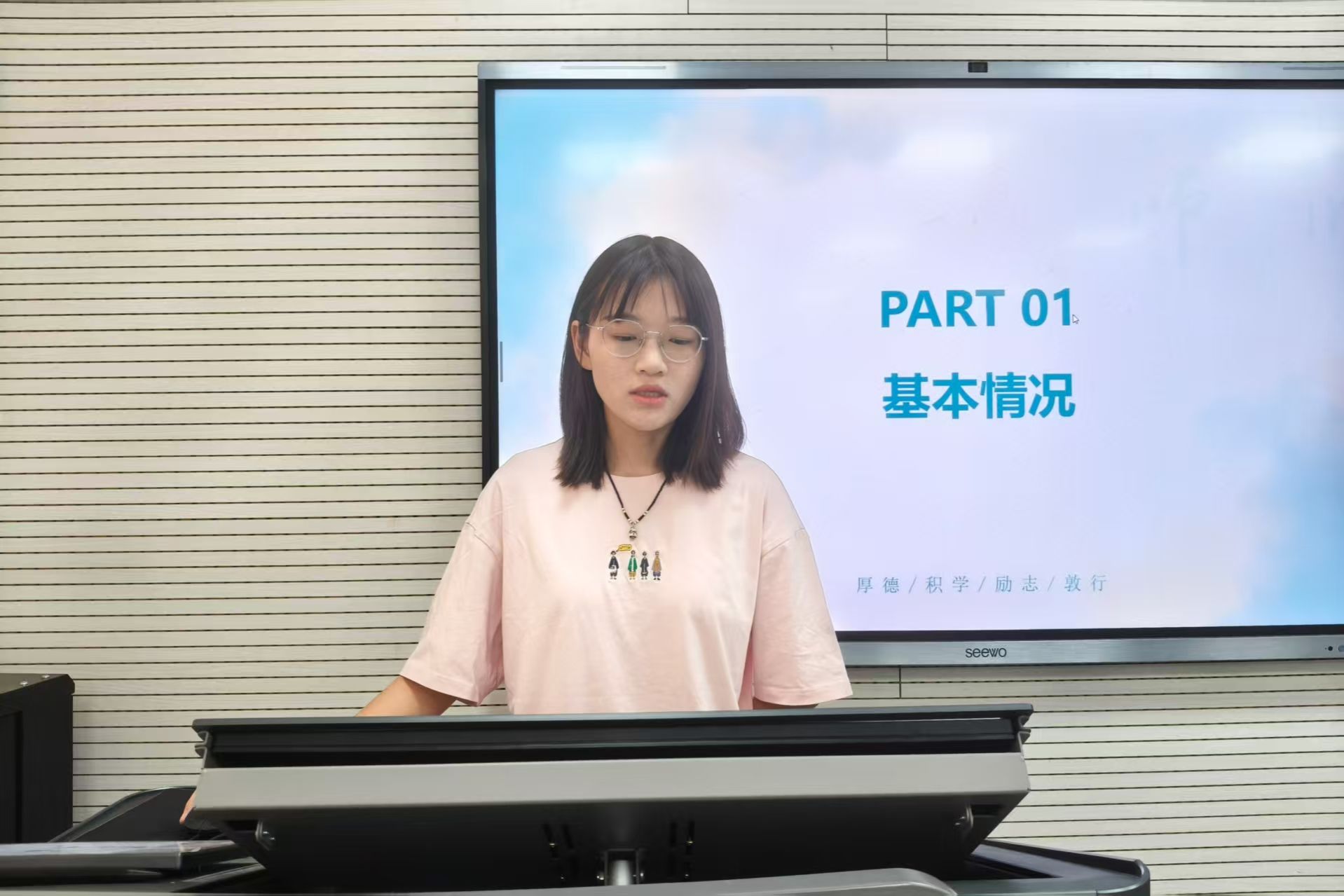 陈昭蓉以“明确目标,坚持不懈——国奖经验分享”为题,从论文撰写、参与译著、科研项目、学术竞赛和实践活动五个维度分享个人国奖经验。她首先详述了自己在论文选题、资料收集、撰写修改过程中的心得体会,尤其指出了创新视角选择与系统性文献梳理的重要性。接着,她分享了参与译著工作时遇到的困难与解决方法,特别是专业术语处理的实用技巧。她还着重分享了个人在各类翻译竞赛中的参赛经验与备考技巧。最后,陈昭荣直观呈现了科研项目从申报到结项的完整管理经验,以及在实践活动中如何实现学术成果的有效转化。