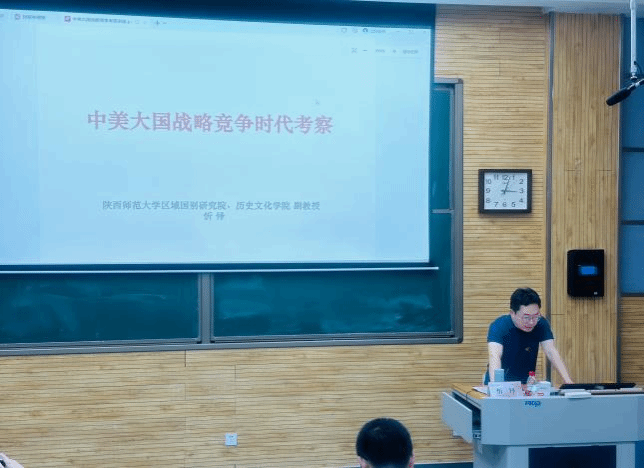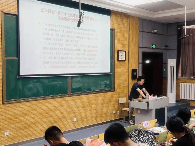 随后,忻怿副教授从四个方面系统全面地讲解中美大国战略关系。一是近五年到七年及二十大以来国际局势与安全治理变化宏观态势,二是近年来美国对华安全战略的新编排与新特点,三是中俄全天候战略关系,四是应对国家安全新局面的教训与思考。同时,他呼吁青年学子关注国际政治动态,培养批判性思维与全球视野。