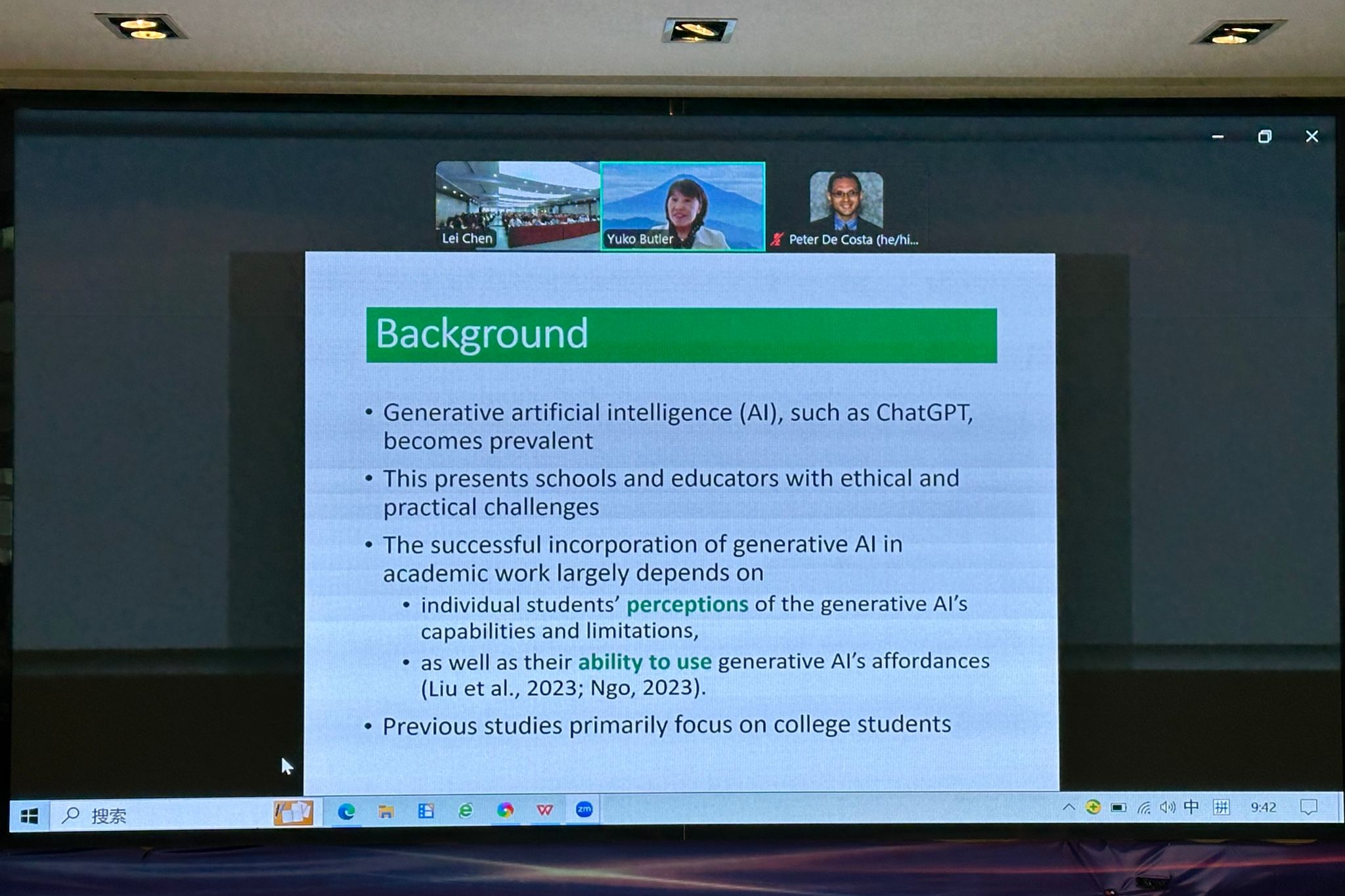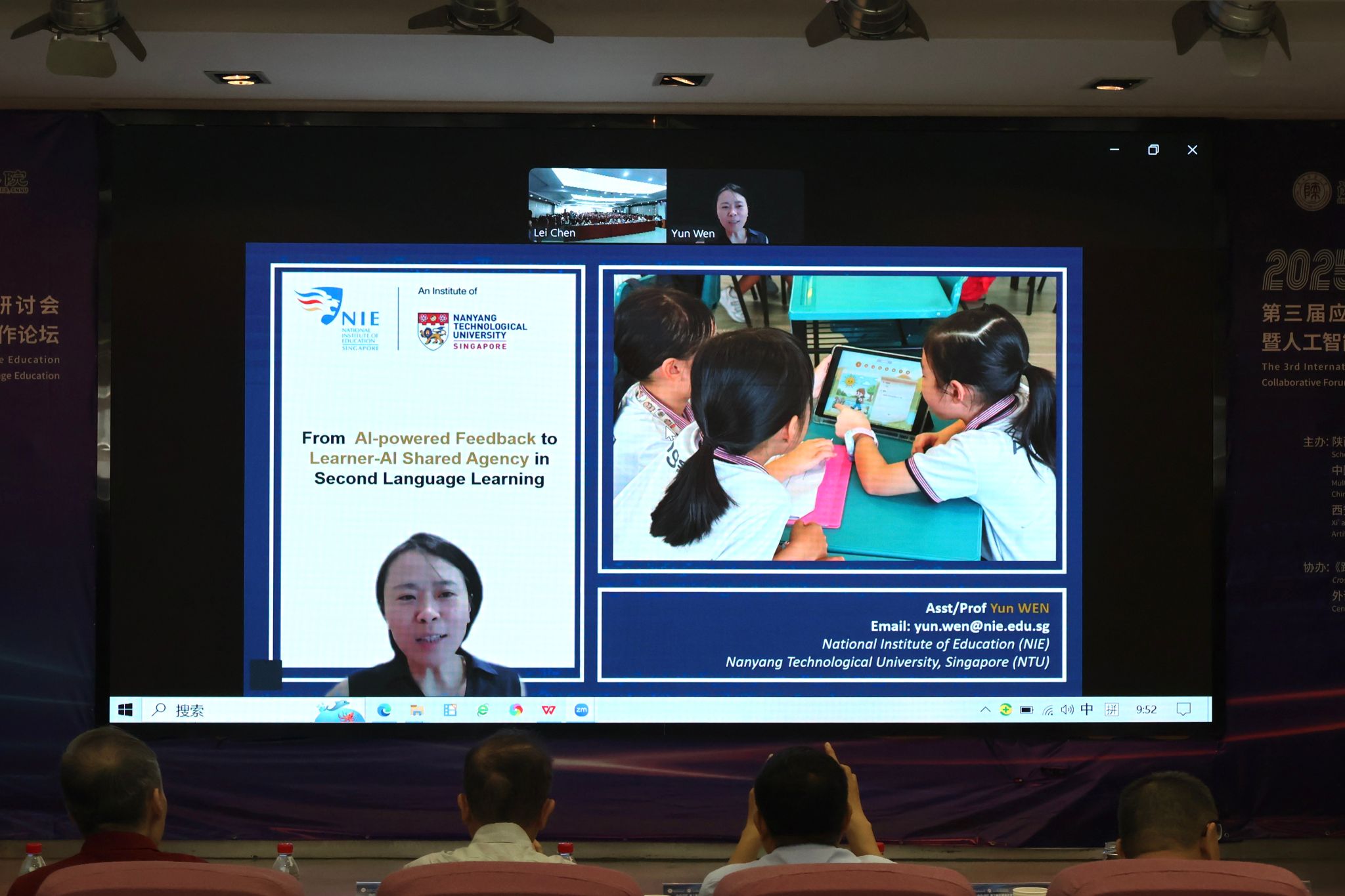 新加坡南洋理工大学温韫博士以From AI-powered Feedback to Learner-AI Shared Agency in Second Language Learning,为题进行汇报,论述了生成式人工智能对耳语学习者学习能动性的重要影响。
