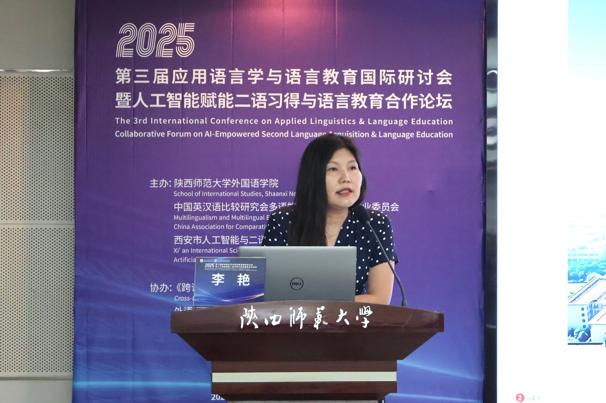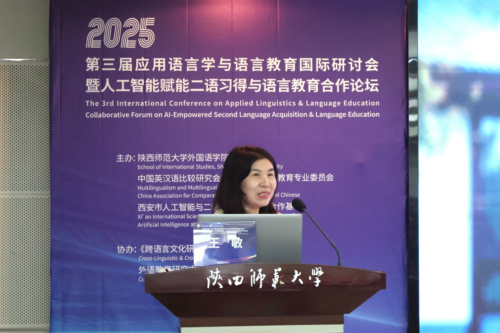 浙江大学王敏教授以《互动协同研究中的跨学科对话与融合》为题进行报告,探讨了应用语言学研究与人工智能领域关键问题结合的路径,为二者深度融合提供了思路。