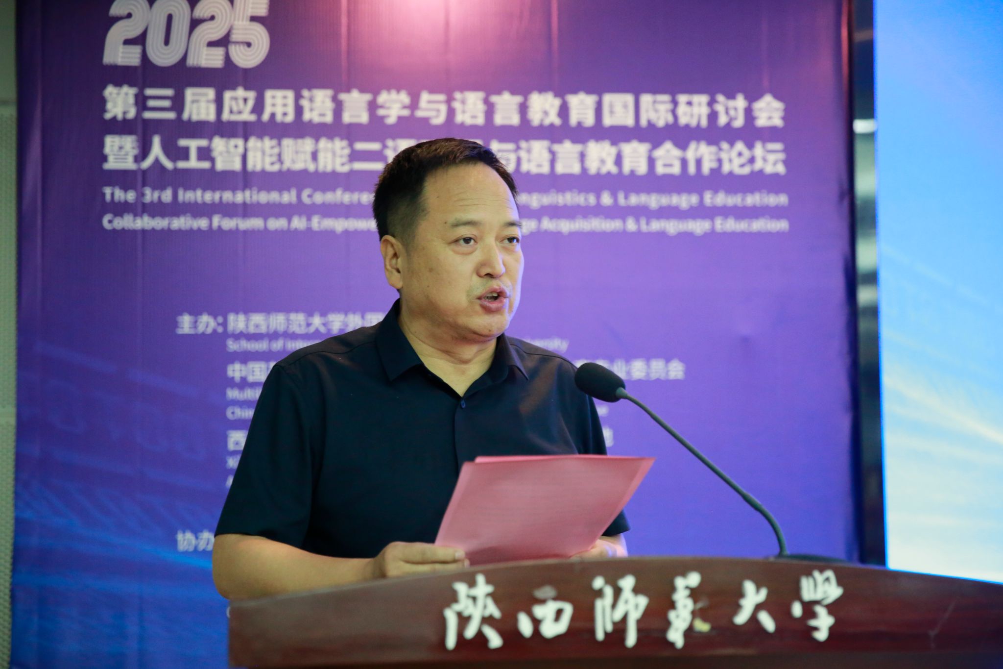 王云博在开幕式致辞中表示,语言是文明的载体,教育是文化的纽带。在全球化与数智化交织的新时代,语言教育挑战与机遇并存,语言教育者需要秉持初心,思考语言教育的本质所在;着眼未来,探寻科技与人文的融合之道。他指出,本次研讨会聚焦前沿话题,都具有重大意义,必将为智能时代的语言教育发展提供新路径、新方案。