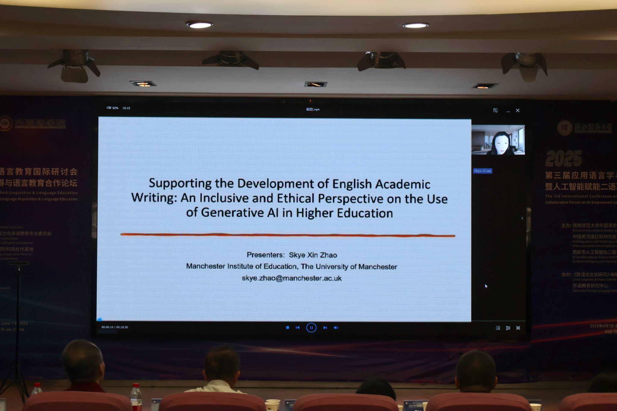 英国曼彻斯特大学赵欣博士以Supporting the Development of English Academic Writing: An Inclusive and Ethical Perspective on the Use of Generative AI in Higher Education为题进行汇报,为生成性人工智能在高等教育中的合乎伦理和包容性使用提供实践建议。