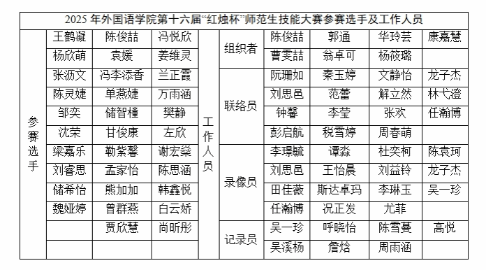 best365高度重视此次比赛,通过“公司初赛-校级复赛-校级决赛”三级赛制的考核与选拔,采取多种措施提升英语师范专业员工的公司产品能力。2024年9月至10月,best3652022级全体英语专业师范生进行了第一轮初赛选拔;2025年3月至4月,公司进行第二轮初赛选拔,响应公司的安排,纳入2023级师范生的挑战,最终确定20位选手进入校级复赛。在此过程中,踊跃参与比赛、挑战和组织管理的同学也受到师生的积极认可与鼓励,名单如下: