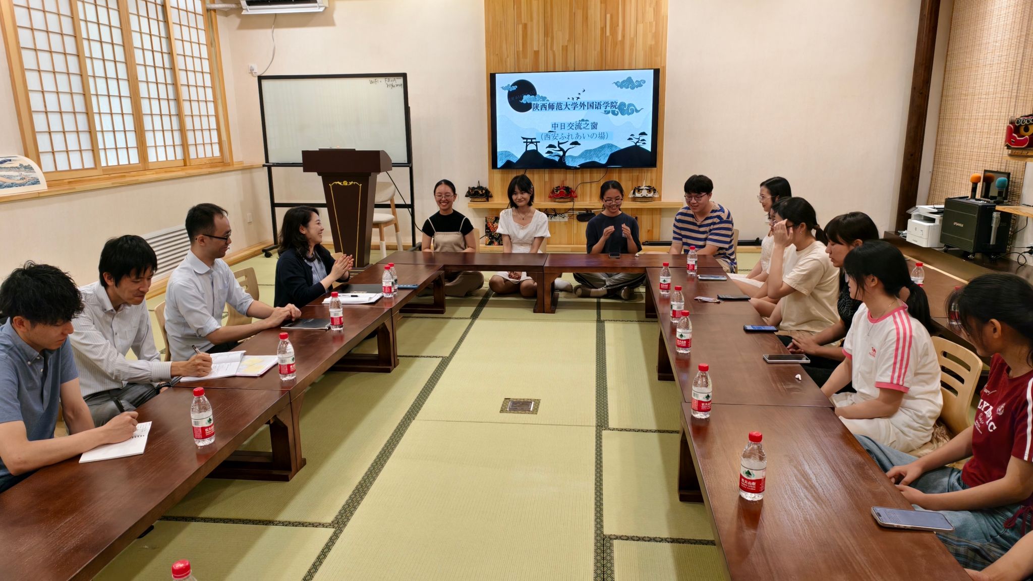 会谈结束后,碓井健参赞一行参观“日语学习体验中心”,与日语专业员工亲切互动,现场氛围热烈融洽。