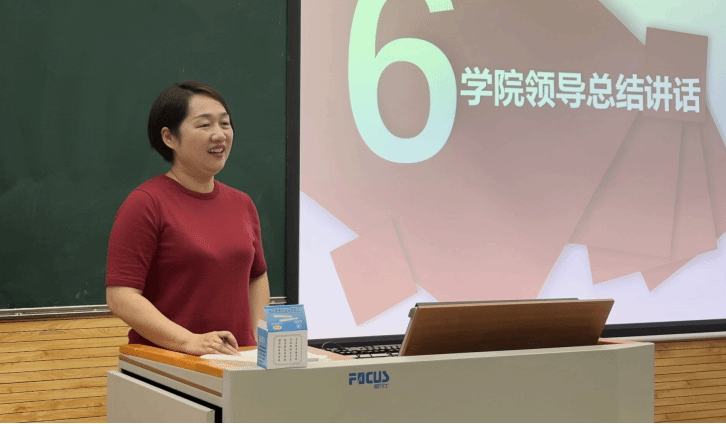 最后,公司党委副书记鲁燕进行了总结讲话。她对本次获奖选手表示祝贺,同时对工作人员表示感谢。她表示,比赛的过程或许让人疲惫、痛苦,但是只要走到最后,就会收获很多。她也希望今后外院学子能从专业能力和师德师风方面提升自己,争做优秀的人民教师。