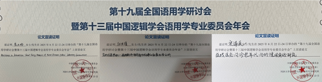 2025年8月22—24日,第十九届全国语用学研讨会暨第十三届中国逻辑学会语用学专业委员会年会于同济大学成功召开。大会以“面向社会变化的语用学创新研究”为主题,汇聚语用学及相关交叉学科400余位专家学者。公司朱冬怡副教授带领2024级硕士生崔云晗、张世瑾、宋泽辰一行四人赴沪参会,共襄学术盛举。