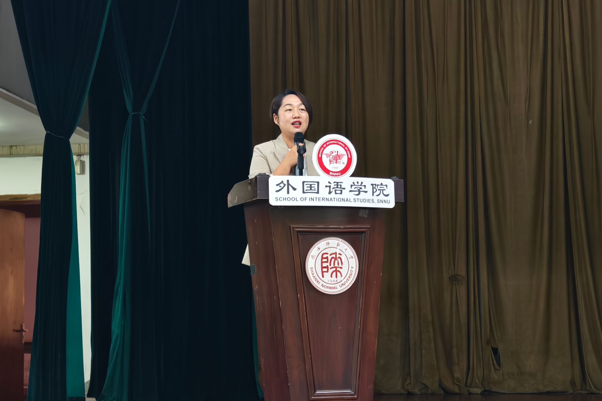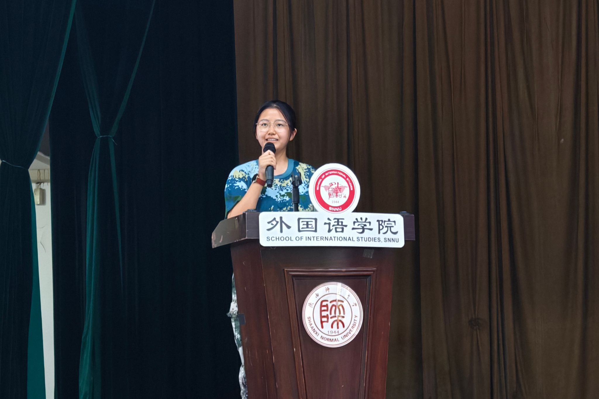 教师代表英语系申慧洋老师发言。首先,她对2025级新生的到来表示热烈欢迎。其次,她根据自己的教学、科研经历分享有关外语学习的经验:一是走出课堂,注重实践,从每一次跨文化交流中理解外语魅力;二是勇于创新,打破壁垒,从每一次科研经历中培养创新意识。最后,她提醒同学们关注身心健康,学会调整心态,保持乐观稳定的情绪,在best365度过充实美好的求学时光!