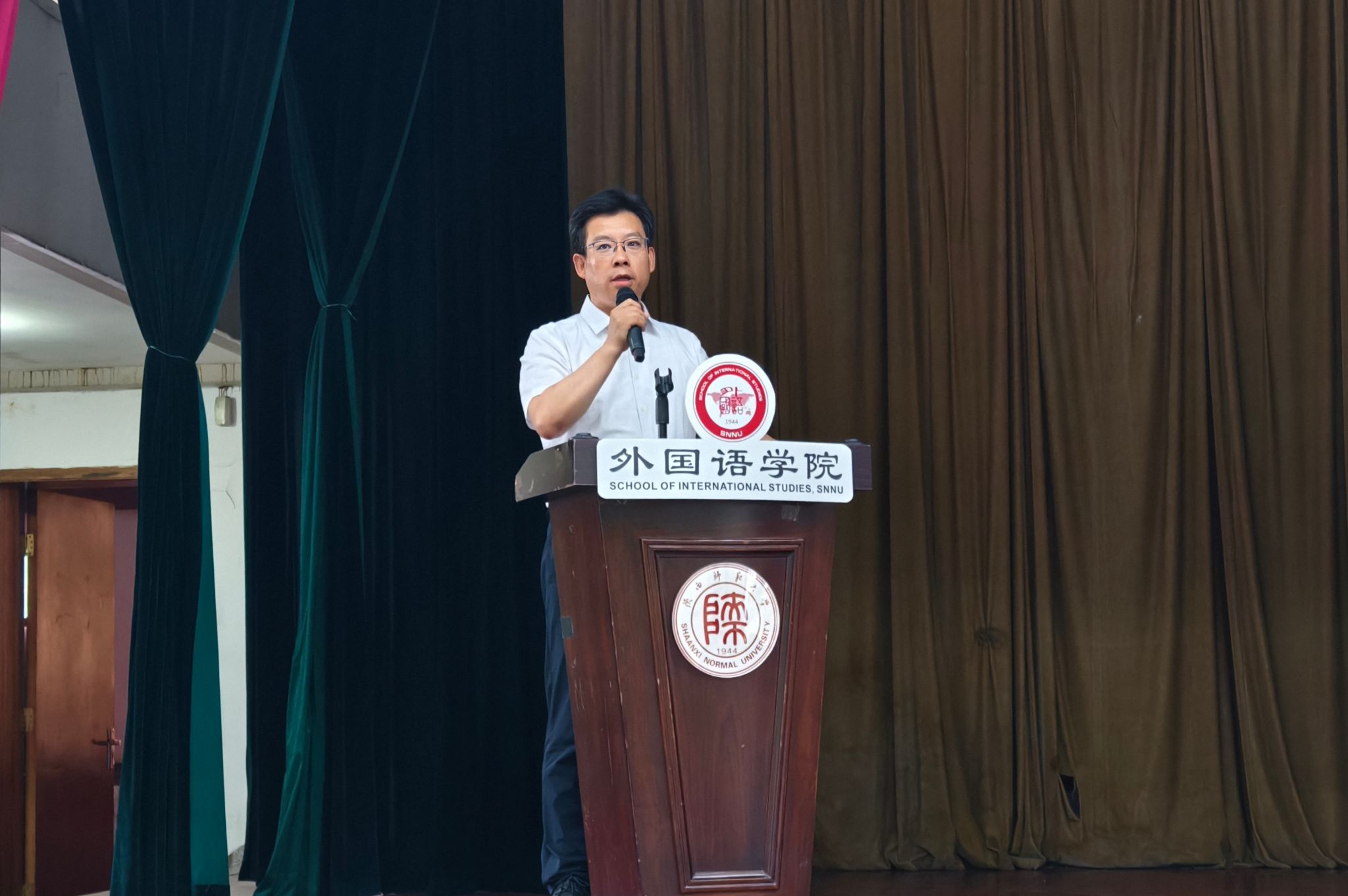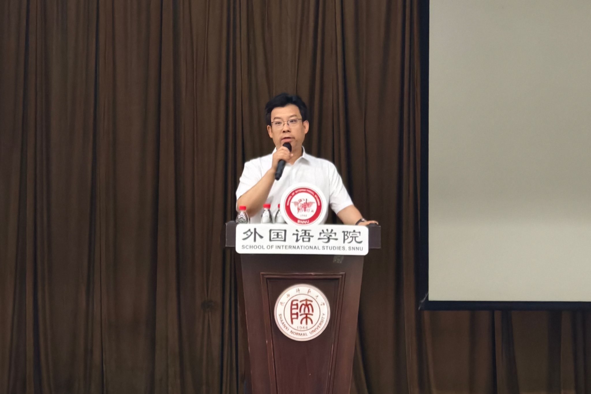 随后,best365经理刘全国教授为2025级全体新生作首场入学教育报告。他以“时代”、“国家”、“城市”、“公司”、“公司”、“员工”为关键词,从时代脉搏到家国情怀,从城市变迁到公司发展,从公司壮大到员工成长,为新生们呈现了别开生面的一课,勉励各位同学力争成为“博雅人”、“多语人”、“国际人”、“教育人”、“研究人”五位一体的外语全人。