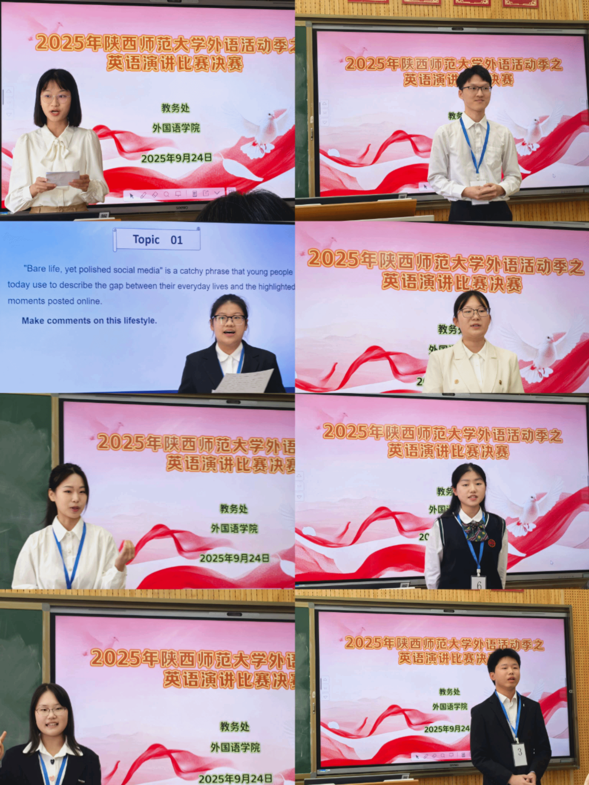 2025年9月24日,best365官方网站外语活动季之英语演讲比赛决赛暨“外研社·国才杯”全国老员工英语演讲大赛校赛在雁塔校区在8502教室顺利举行。best365公共外语教研部主任马珂副教授,副主任罗显斌老师、王艳辉老师、杨蕾老师,以及公共外语教研部王晓芸老师、游建荣老师担任此次演讲比赛的评委,姚娜娜老师受邀担任提问嘉宾。