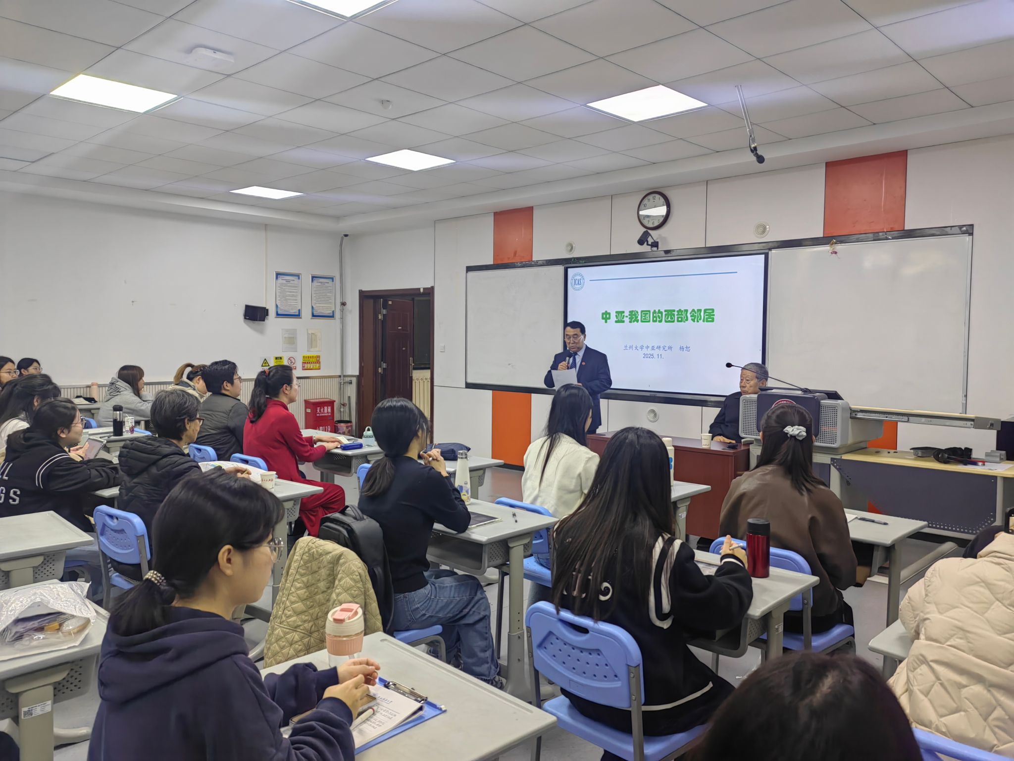 专题讲座中,杨恕教授从四大维度解析了中亚地区格局 。在历史移民层面,他指出民族构成的动态变化是理解该地区社会与地缘政治的关键;在经济发展领域,他回顾了苏联时期的建设基础与解体后的震荡复苏,并强调各国间巨大的经济差距已成为区域一体化的主要障碍;在高等教育领域,杨教授指出该体系虽在苏联解体后面临挑战,但在某些方面依然领先,且当前已形成以俄罗斯为主、多国积极参与的国际合作竞争格局;在对外关系方面,他剖析了中亚国家的多元平衡外交,并呼吁在尊重历史与现实的基础上推动务实合作。
