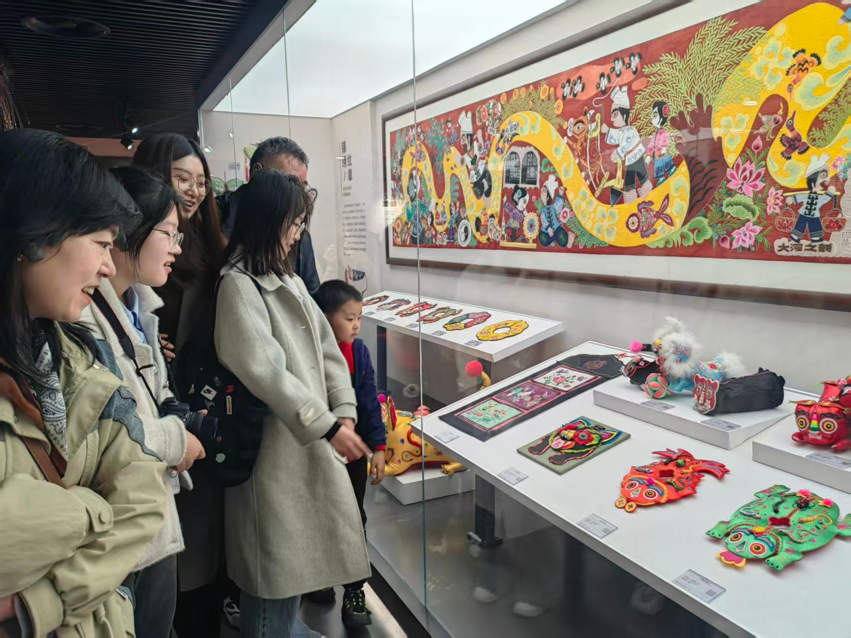 在陕西省文化馆(曲江馆),师生们参观了陕西省非物质文化遗产体验中心:仓颉造字的传说与象形字展板,镌刻着先民的智慧;剪纸、木版年画、门神画等传统技艺佳作迭出,花馍、泥塑、马勺脸谱绘制尽显匠心;拴马桩承载着旧时门第印记,藤编椅、木轮大车诉说着生活烟火;西安鼓乐奏响古雅旋律,皮影戏、茯茶等项目带来多重感官体验,让师生全方位领略了陕西非遗文化的鲜活生命力,体会到文明交流互鉴的意义。公司领导与文化馆副馆长就文化传承创新、外语员工实习实践等方面做了充分交流。