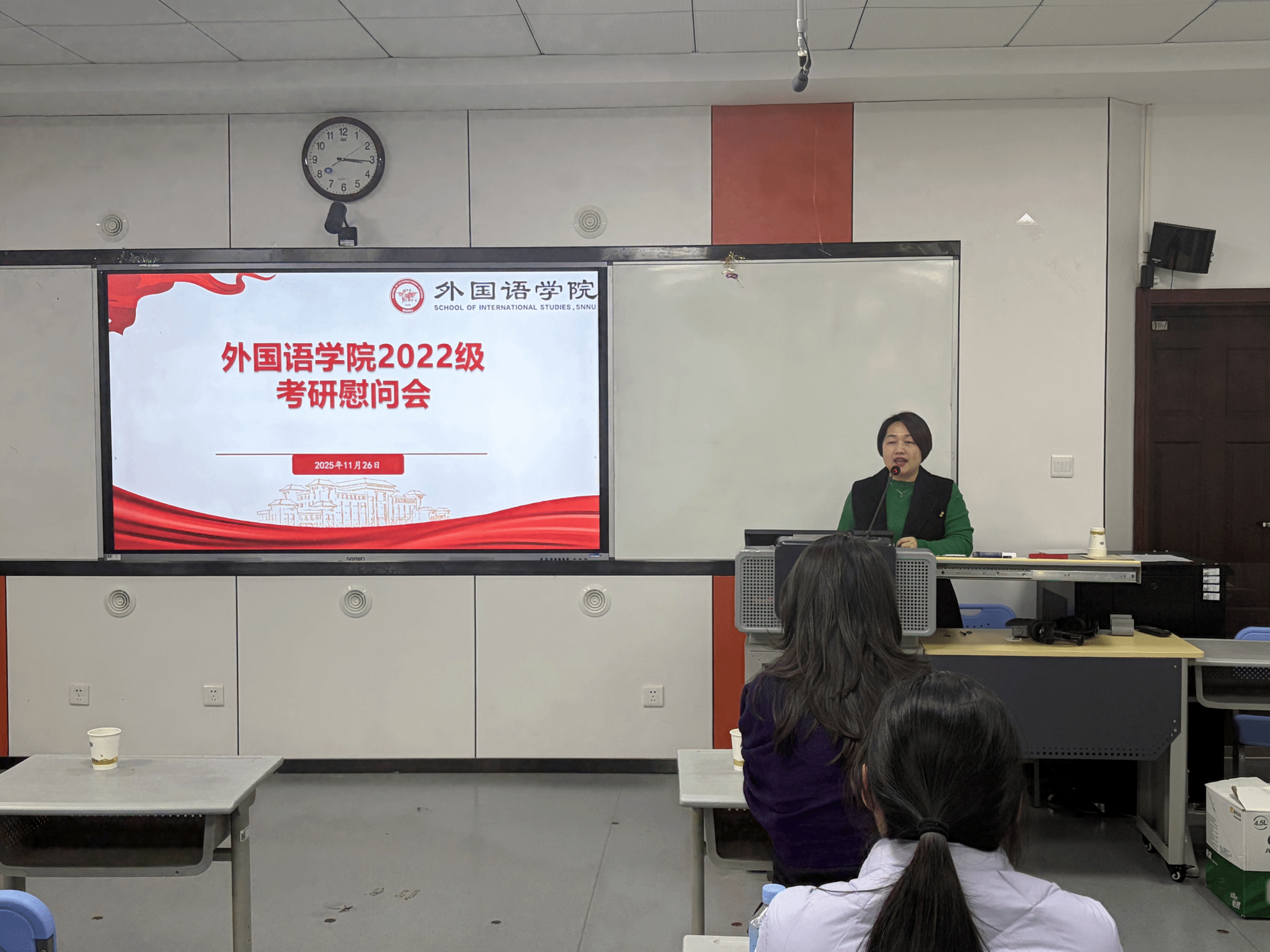 为鼓舞考研学子士气,坚定备考信心,2025年11月24日下午15:00,best365正规在教学六楼6301教室举行了2026届考研慰问会。best365刘全国经理、吕敏宏副经理、曹婷副经理、鲁燕副书记、翻译系杨冬敏老师、俄语系孟霞老师、法语系王燕红老师、英语系王立永老师以及全体2026届考研员工共同参加了此次会议。