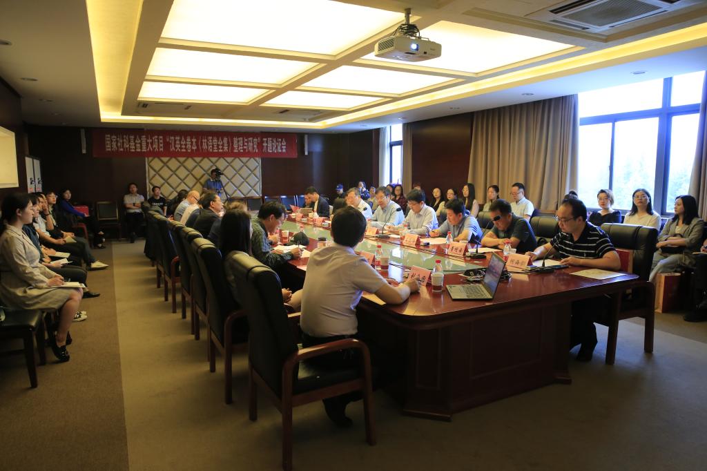 专家评议环节由彭青龙教授主持。项目首席专家刘全国教授从研究状况与选题价值、总体框架与预期目标、研究思路与研究方法、重点难点与创新之处等六个方面对重大项目设计进行了汇报。刘全国介绍,课题将对散落全球各地的林语堂创作的中、英文文学作品、林语堂作品汉译本、词典、教材、演讲、访谈、学术论文、书信札记等进行整理,编纂汉英全卷本《林语堂全集》(拟编86卷)。课题还将考察林语堂汉英跨语际双语创作与翻译书写的互动,探讨其创作史、翻译史、学术史、文化观、文学观和翻译观之间的观照和对话,挖掘林语堂翻译书写与文化传播对当代中华文化海外传播及中国文化“走出去”的借鉴意义和启示价值。