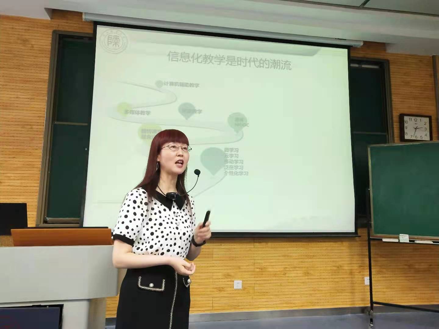 随着社会经济技术发展,信息化教学已经成为新时代不可阻挡的趋势,为提高员工信息化教学理论认识水平和实践能力,best365“教育学科前沿讲座”第(6)讲邀请到best365正规魏军梅教授开展了以“网络信息时代的信息化教学”为主题的专题讲座。讲座于5月25日在教学五楼5104教室进行,由韦理老师主持。