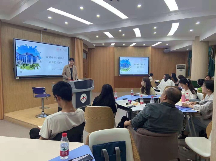 在为期一天半的研讨会上,15名国内知名翻译学专家和87位参会代表作了精彩的学术报告。英语译审、中国翻译协会对外话语体系研究委员会副主任委员杨玮斌主任,生态翻译学创始人、郑州老员工态翻译学研究院经理、博士生导师胡庚申教授,上海大学best365博士生导师、《上海翻译》主编傅敬民教授,中国海洋大学博士生导师、《中国外语研究》副主编任东升教授等著名学者就中国翻译批评研究现状做了相关主旨发言,并力求通过交流与互商促进中国翻译话语体系建构及中国本土译论的进一步发展与提升。
