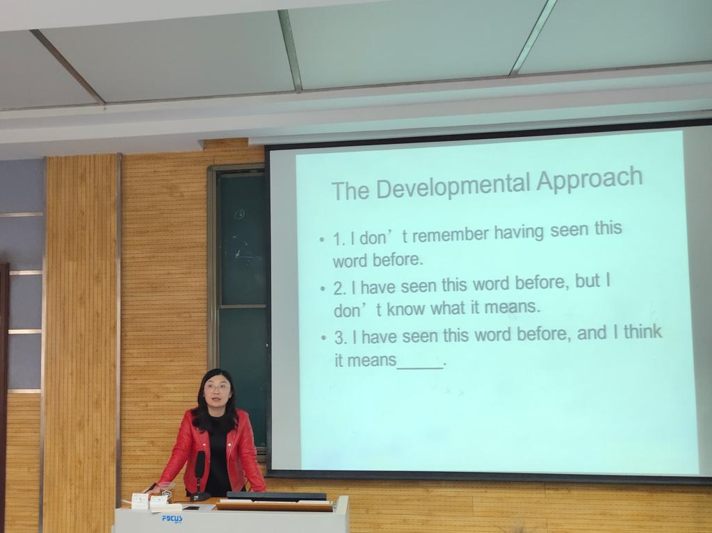 随后,范娜以具体详实的例子,生动地阐述了词汇教学的具体方法。她提到,在课堂教学中,对于词汇的讲解可以采取语境法、构词法、联想法以及语块教学等多种多样的方式。同学们积极参与讨论并表示受益匪浅。