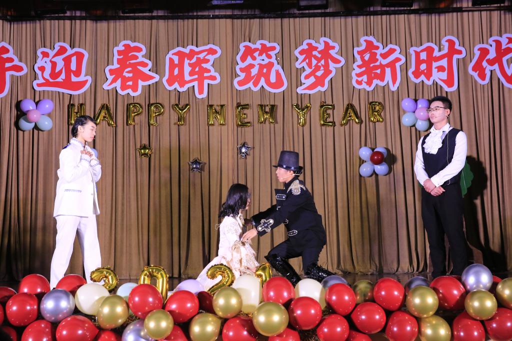 晚会第一篇章《携手同行·共筑梦》,张靖一等同学带来的乐队演奏,紧凑的鼓点与激烈的电吉他,流畅的歌声,充满了青春的激扬。紧接着是秦可心等同学带来的充满国风韵味的古典舞《牵丝戏》,红色的舞袖华美而动人,矫健的舞姿尽显东方之美,惊艳的唱腔更是令台下掌声连连,欢呼阵阵。由莎士比亚戏剧社带来的改编版《仲夏夜之梦》,细腻的演绎、精致的服装、流畅的英文台词,充满感情且富有感染力,让同学们领略到了英伦文化的独特魅力。公司教职工代表和小朋友们一起带来的《最炫外院风》,孩子们稚嫩的舞姿充满童真,老师们活力四射的精彩表演将本场晚会推向高潮。党委书记马正平做了热情洋溢的致辞,对公司师生表达了新年的祝福。