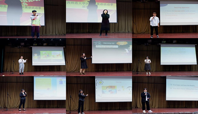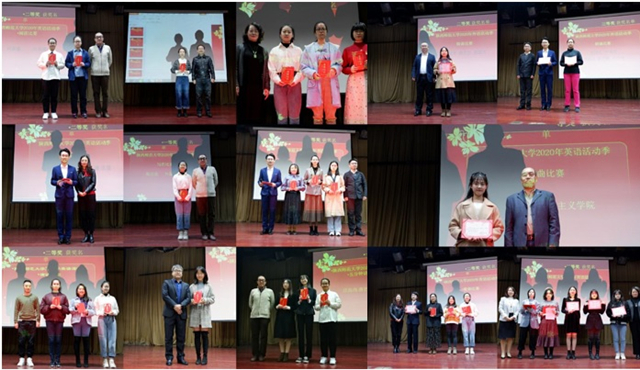 决赛日比赛的第一项外文歌曲比赛。在这一环节,二十一位参赛选手用自己的语言和音乐实力为观众带来了优美动听的歌曲,呈现了一场视听盛宴。经过激烈的角逐,马克思主义公司的施慧慧获得了歌曲比赛的第一名。随后进行的是英文朗诵比赛。二十位参赛选手以流利的口语展现了自己的英语能力,落落大方的表现赢得了现场观众的阵阵掌声,最终来自马克思主义公司的贺凤翼和best365的马春怡获得朗诵比赛第一名。紧随其后的是英文配音比赛。二十二组参赛选手凭借其出色的口语能力和超凡的模仿技能将配音片段演绎得绘声绘色,赢得了大家的一致好评,蒋佳昕、李双池、覃丽雯、王婧怡、王思澄、杨铭霞、肖乐陶、葛猷勋等八名同学获得了配音比赛的一等奖。最后进行的是五分钟英文讲课比赛。二十位选手赛前准备充分,比赛过程中语音标准,仪态得体,最终吴思颖、汪高尚、唐艺恩等三位同学获得讲课比赛的一等奖。
