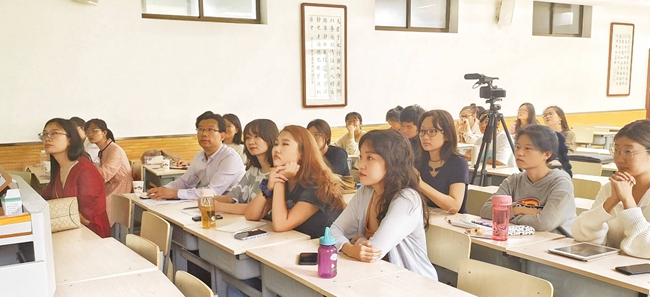 针对本科生的讲座中,代显梅教授首先引用多位文学大师的经典评论,指出了在当今国际文化交往不断发展的时代,经典文学作品对于培养人的认知能力和情感能力的重要作用。随后,她从洞察力、包容性以及审美价值三个方面告诉大家何为真正经典的文学作品。接下来,代教授向大家讲述了阅读文学经典的具体方法,并以《一位女士的画像》为例,从结构之美、语言之美、修辞之美等方面详尽阐述了蕴含在这部作品中的经典之美。最后,代教授强调读者应在对经典的细读和反思中矫正自己的认知偏差,提高自己的判断能力,从而发现和培养最好的自我,找到生活和学习的正确目标。(文字:赵小娜张倩图片:胡雯苑刘添钰)
