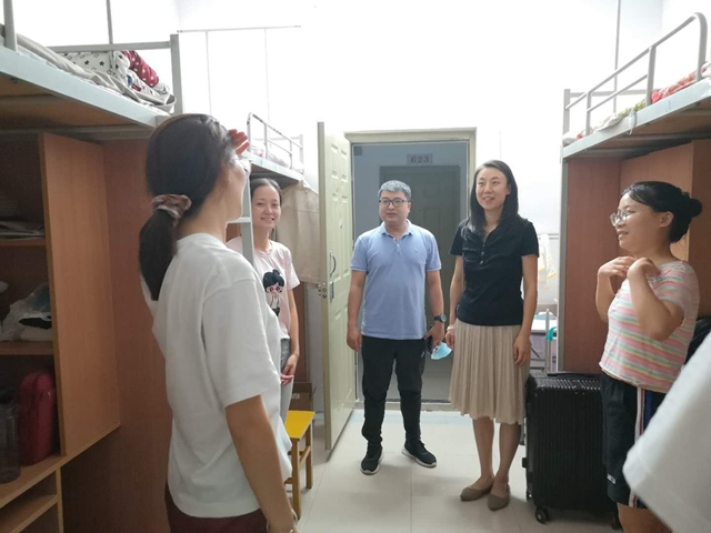 9月6日晚,公司党委书记马正平、副经理刘全国、副经理孙坚、副经理曹婷、党委副书记鲁燕、办公室主任王幸生以及研究生辅导员董洁走进2020级研究生新生宿舍,亲切询问新生入学情况并沟通交谈,使新生们感受到了来自公司老师的关怀。9月8日晚,辅导员董洁召开了新生见面会,对于新生入校后的教育管理服务做了详细的引导和说明。