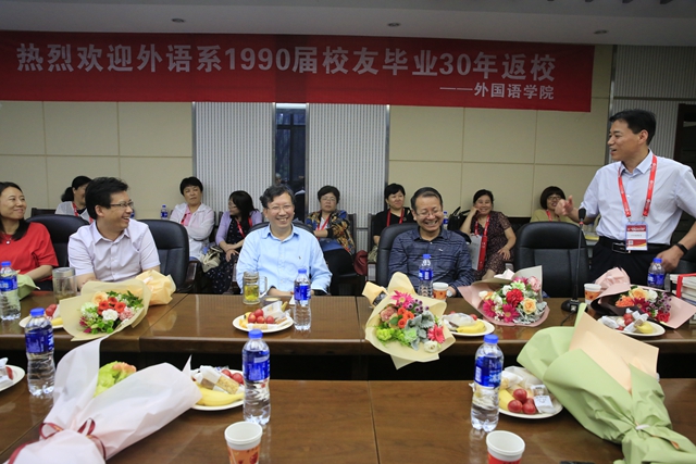 7月25日,公司迎来了毕业30年员工返校日,员工们从各地回到公司,怀揣青春记忆,共叙外语人情怀。下午3时,外语系1986级33名员工齐聚教学六楼会议室参加座谈。时任教师韩彬梨、李炜、高益荣、王胜利,公司经理王启龙、党委书记马正平、副经理刘全国、副经理曹婷、副书记鲁燕、办公室主任王幸生、教师张思琦参加了座谈。