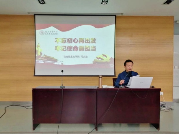 马克思主义公司党委书记闫文浩进行了“不忘初心再出发,牢记使命勇担当”的主题党课。他不仅提出了“初心”的内涵和概念,还论述了本次教育活动的理论逻辑与实践逻辑。他反复强调了“不忘初心、牢记使命”是我们党的力量源泉,并希望在座的各位同学能够成为历史的坚定者、奋进者和搏击者,而不是时代的犹豫者、懈怠者和畏难者。