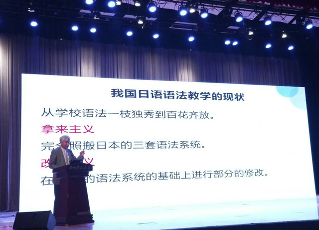 会上,彭广陆教授做了题为“面向汉语母语者的日语教学语法系统的建构”的主题演讲,他指出,作为日语教育大国的日语研究者,应该在日语研究以及日语教学研究方面有所作为,呼吁广大日语研究者,勇于探索,不断进取,重新审视语法系统,致力于日语语法教学改革,合力构建一套面向我国汉语母语者的日语教学语法系统。