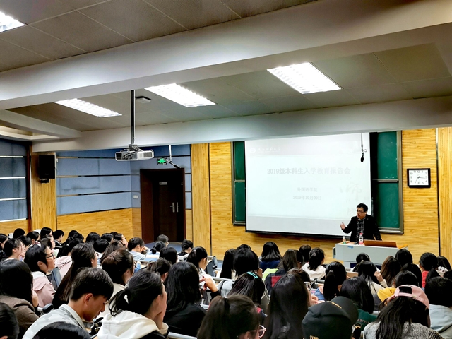 为帮助新生更加全面认识大学学习生活,了解学科专业发展方向,把握成长成才规律,10月9日晚7点10分,公司刘全国副经理在5101教室为2019级全体本科新生做了第四场入学教育报告会。报告会由辅导员屈婉婷老师主持。