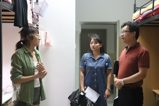 在走访过程中,新生们逐渐从略显拘束变为踊跃发言,积极地讲述了各自的情况和入学的感受。刘全国副经理表示,公司会尽心尽力为同学们在宿舍的学习生活提供良好的环境,也希望同学们无论在生活上还是学习上,遇到任何问题都要及时和辅导员沟通。鲁燕副书记提醒同学们注意宿舍用电安全、人身财产安全,尽快适应研究生生活节奏,不辜负入校的初心和理想。随后,马正平书记也对大家提出了三点期望:一是希望大家多和同学们沟通交流,借助朋辈之力督促自己;二是希望大家尽快完成“研究生”的角色转变,多读书多思考;三是希望同学们明确奋斗目标,规划未来发展,学有所用、学有所获。