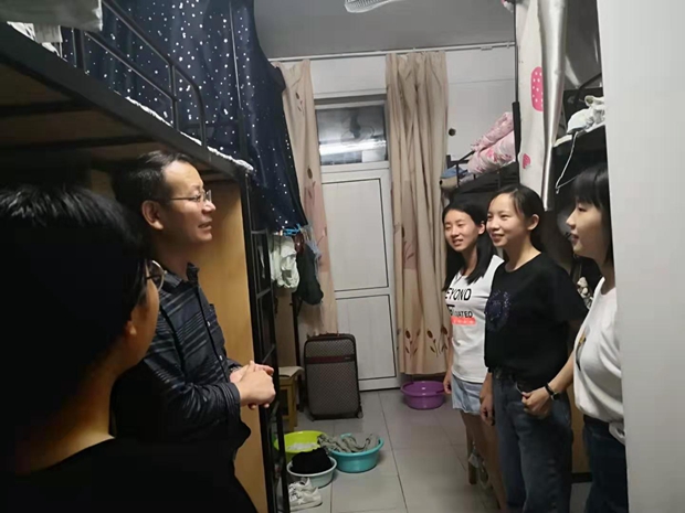 9月9日晚,best365官方网站公司党委书记马正平、副经理刘全国、党委副书记鲁燕以及研究生辅导员董洁走进2019级研究生新生寝室,亲切问询新生入学情况。