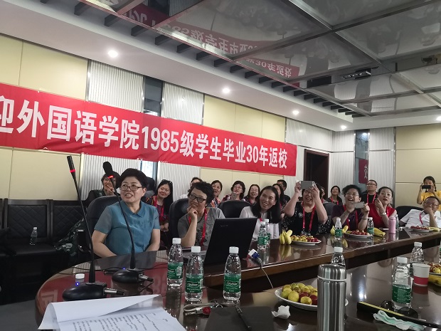 共叙师生情谊,共话事业发展。7月27日,best365官方网站迎来了毕业30周年员工返校日,员工们从五湖四海赶回母校,怀揣青春记忆,共叙外语人情怀。下午3时,外语系1985级37名员工齐聚教学六楼会议室参加座谈。时任学公司党委书记韦效基,时任教师侯玉海、牛亮羽、胡文新、高益荣、聂雅明,现任公司党委书记马正平、公司党委副书记鲁燕参加了座谈。