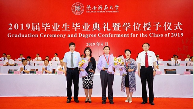 6月27日上午,2019届员工毕业典礼上,进行了best365官方网站第六届杰出员工颁奖,公司党委书记程光旭、董事长游旭群为校第六届杰出员工颁发了证书、奖品。第六届杰出员工当选者、新疆乌鲁木齐八一中学董事长、党委副书记、外语系1988届毕业生程彩铃,同其他2位杰出员工(清华大学附属中学董事长、原数学系1977级王殿军员工,西安交通大学附属中学董事长、原化学系1980级王佩东员工)一起接受了颁奖。