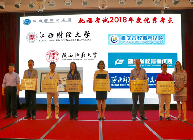 最后,举行了优秀考点颁奖仪式。包括公司在内的21个考点从全国140多个考点中脱颖而出,获得了“2018年度优秀考点”称号,这也是教育部考试中心自2006年开考以来首次颁奖。公司托福考点于2012年7月开始投入使用,共承接了三百余场考试,接待考生近两万人次。在公司各级领导的支持下,经过所有考务人员的不懈努力,逐步改进考务流程、完善考场设施、提高考务水平,实现了考试安全零失误,在考试中心的多次巡视评估中获得了优秀成绩。