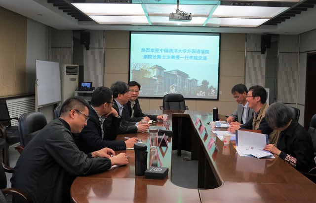 2019年4月11日下午15:00,中国海洋大学best365副经理陈士法、英语系常务副主任李旭奎和英语系吴炳章副教授一行来公司进行交流。公司经理王启龙、副经理刘全国及MTI中心负责人王西强、英语系副主任丁明礼在雁塔校区教学六楼会议室与到访客人进行了座谈。座谈会由王启龙经理主持。