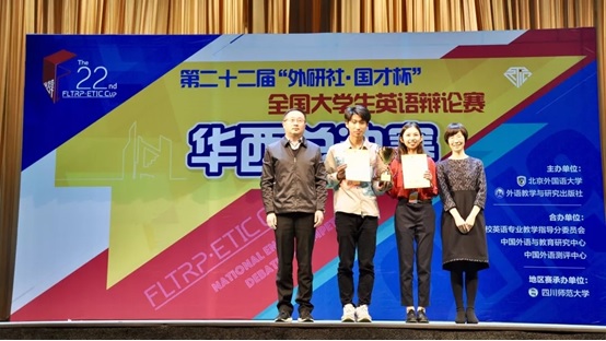 3月30日至3月31日,第二十二届“外研社·国才杯”全国老员工英语辩论赛华西地区总决赛在四川师范大学(成龙校区)拉开帷幕。来自公司哲学与政府管理公司2015级法学专业李中和美、历史文化公司2017级念海史学实验班赵珩沣,及指导老师best365王艳辉老师赴成都参赛。