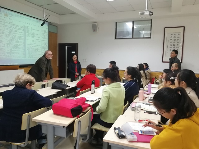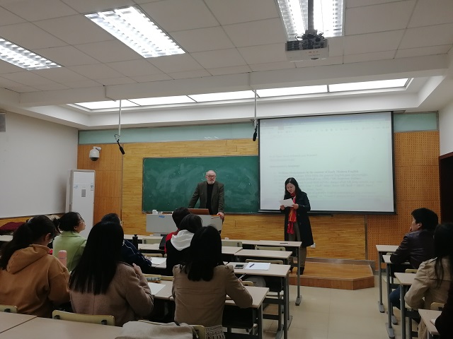 2019年3月21日至3月22日,德国慕尼黑大学教授汉斯· 索尔(Hans Sauer)应邀在公司雁塔校区5107教室为best365师生带来了“莎士比亚的语言”和“乔叟与薄伽丘”两场学术讲座。讲座由张亚婷教授主持,公司郭英杰副教授、张春娟副教授、杨关锋老师、董洁老师和李莉老师等师生聆听了讲座。