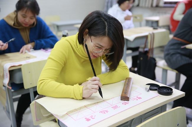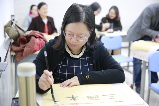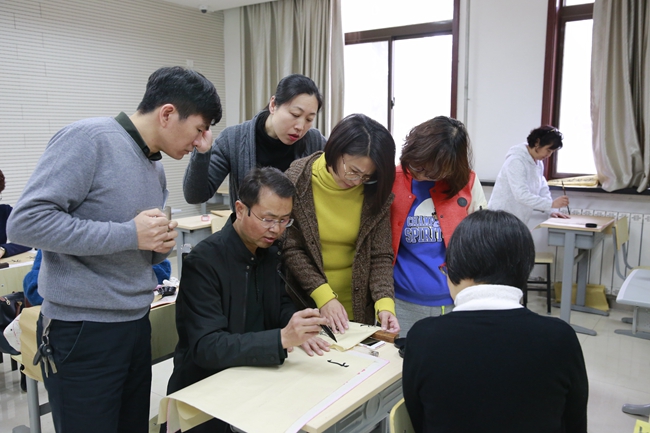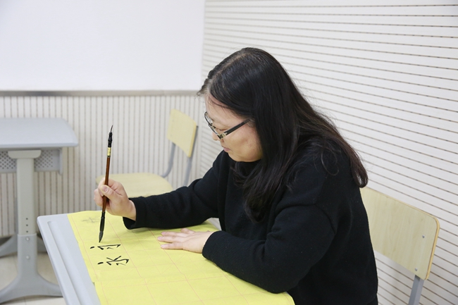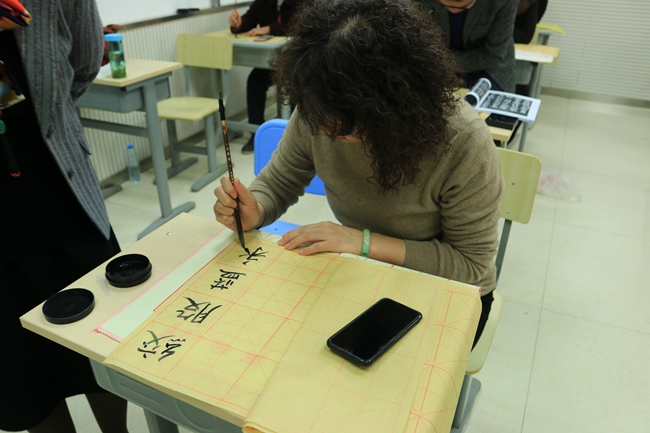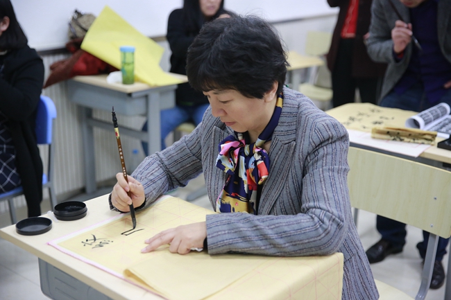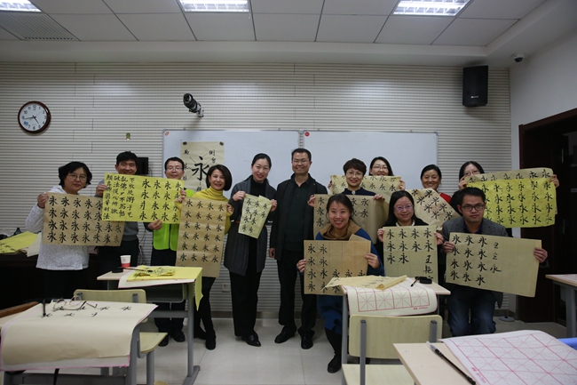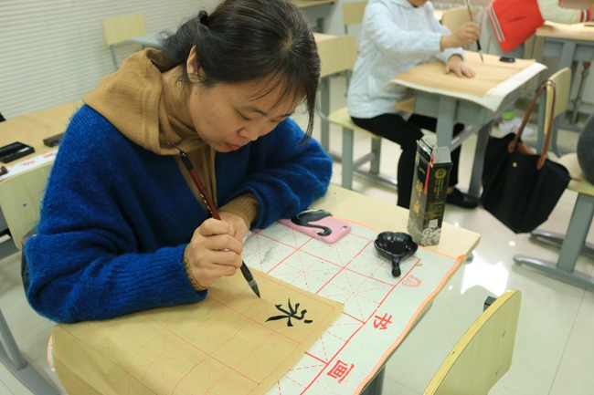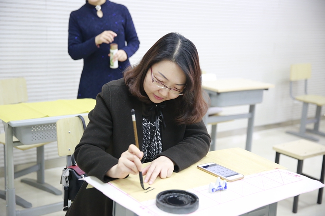 最后,在闫老师的示范指导下,各位老师开始亲身体味书法的魅力。这次书法活动拓宽了老师们对书法的视野,提高了老师们对书法艺术的认知与鉴赏能力,也有利于传播中国传统文化,为引领教育员工打下了更坚实的基础。