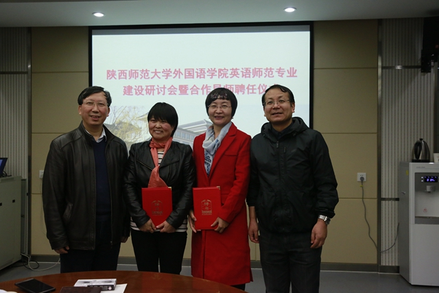 会议上,王启龙经理和马正平书记为西安交通大学附属中学特级教师陈江丽、best365官方网站附属中学英语教研组长雷双娥老师颁发和英语师范专业人才培养合作导师聘书。